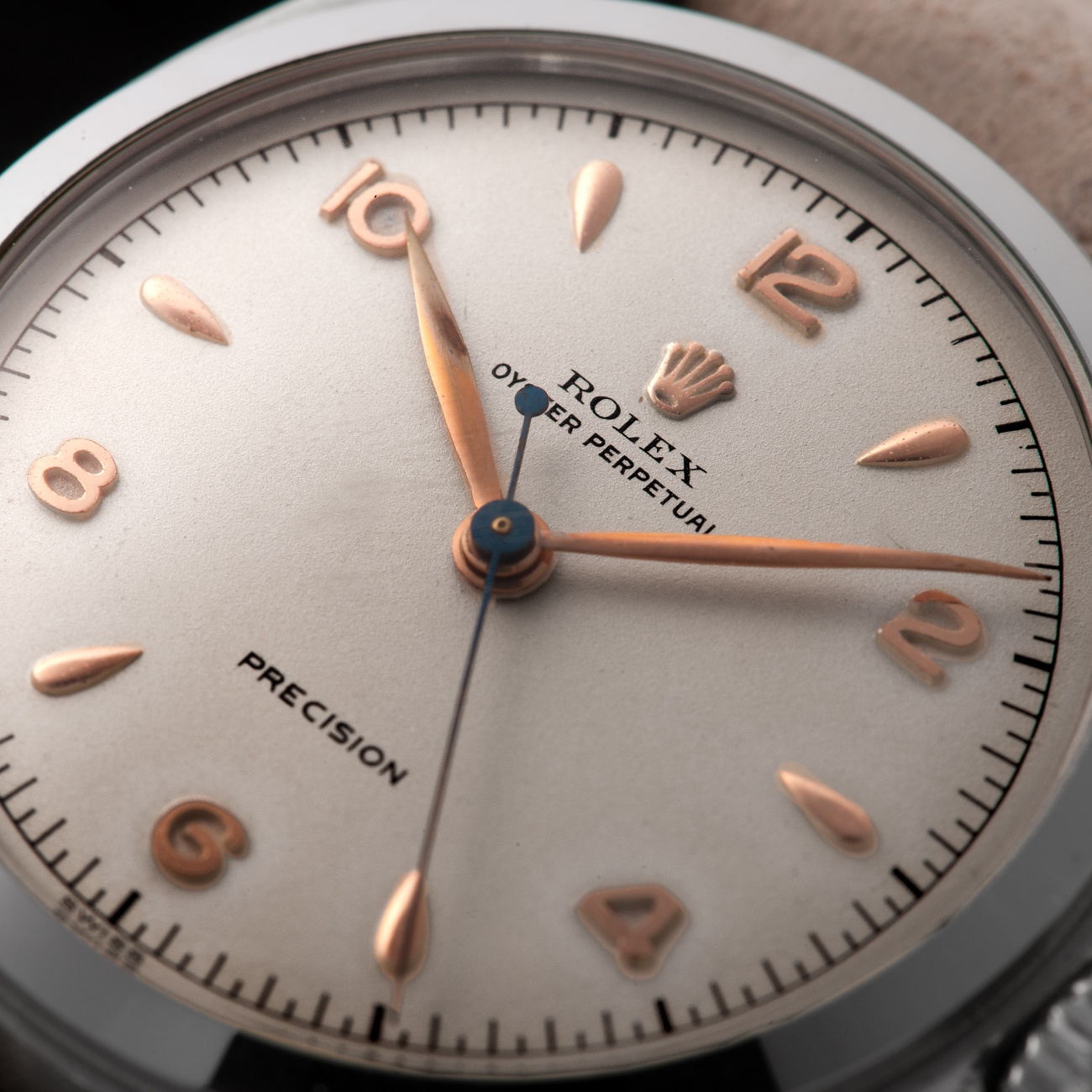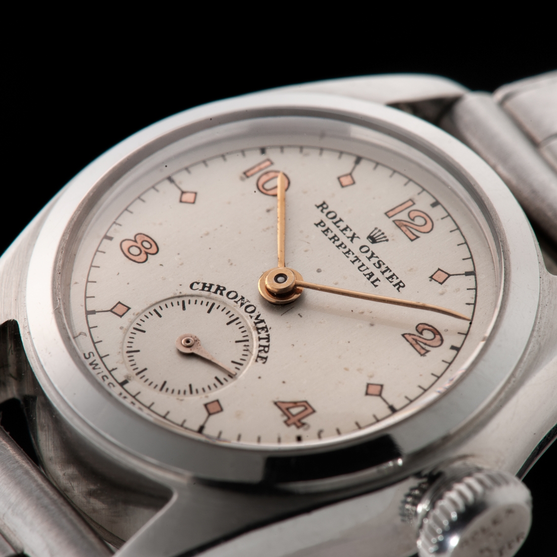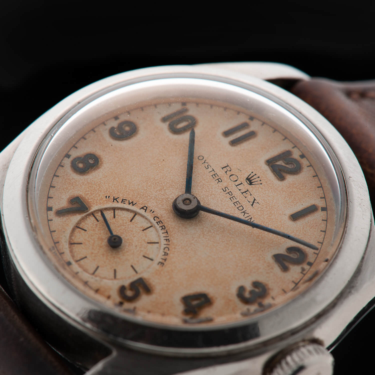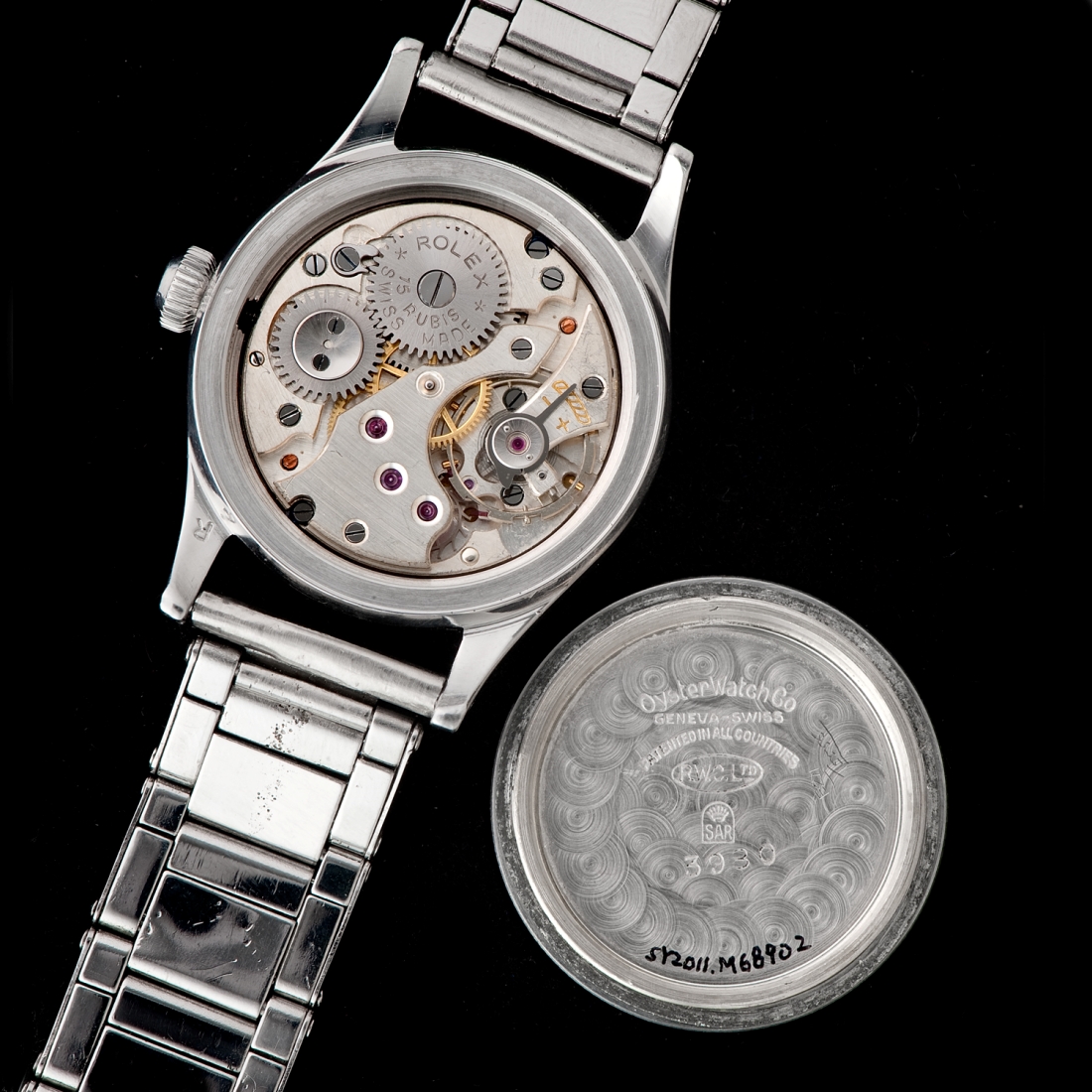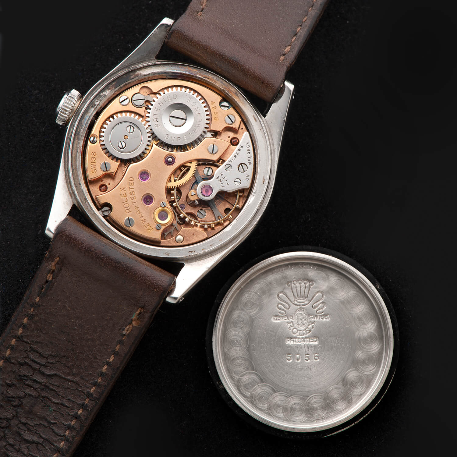殆どの物がRef.5056ボーイズサイズ“OYSTER SPEEDKING”とダイアル表記されたモデルで、ハンドメイドの天真,歯車、受けを使用した機械を搭載している。