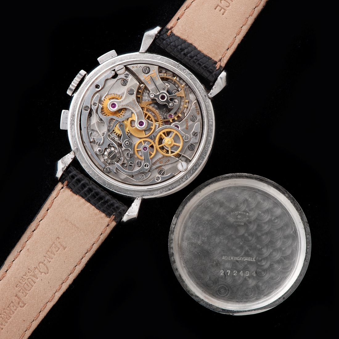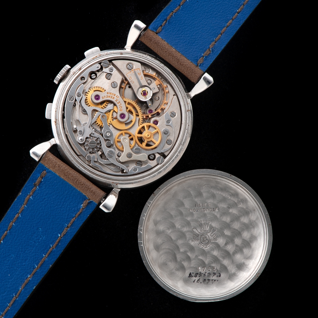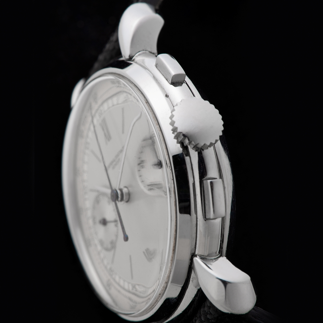 現在においても最小となる手巻き式クロノグラフを搭載した、ケース径29mmの小さな未使用品は、時計史においても貴重な一本です。