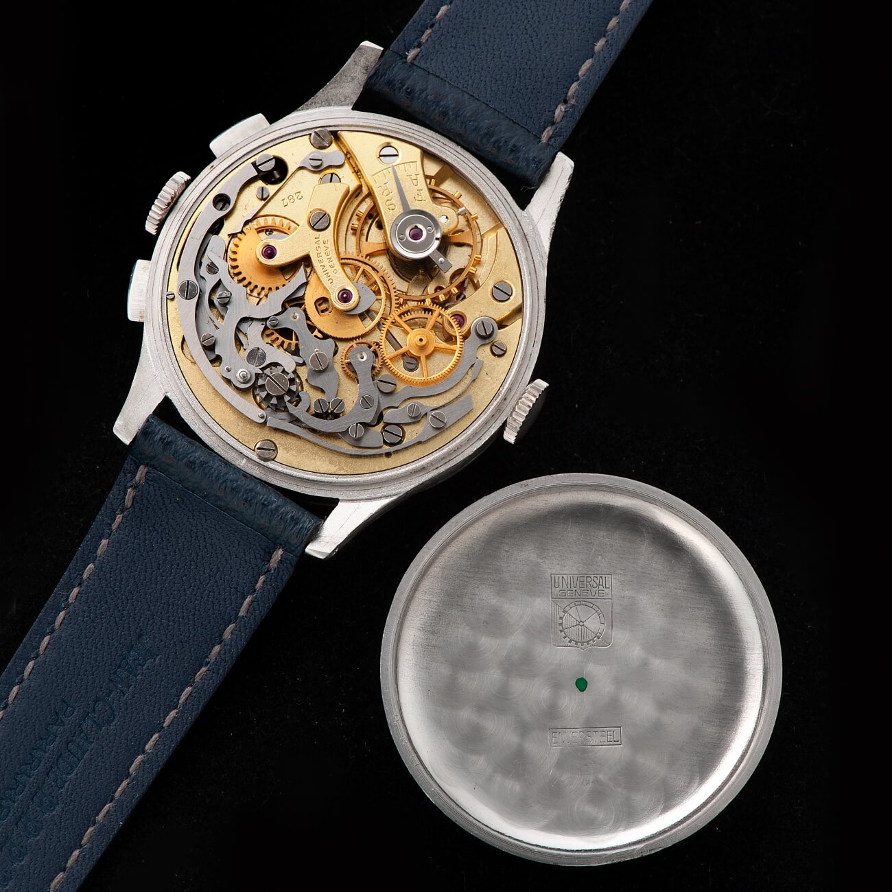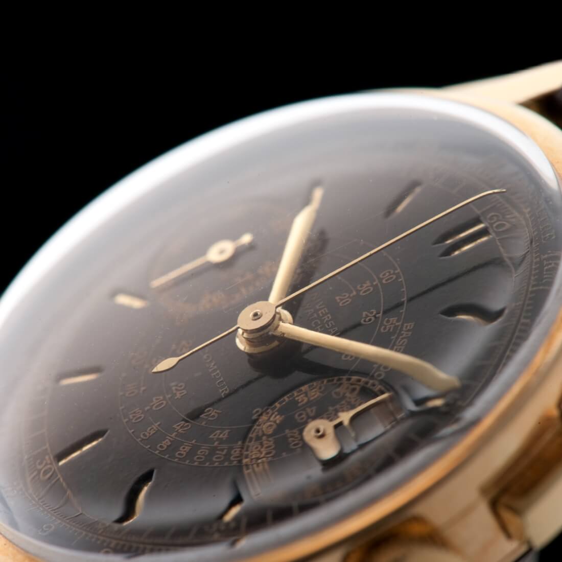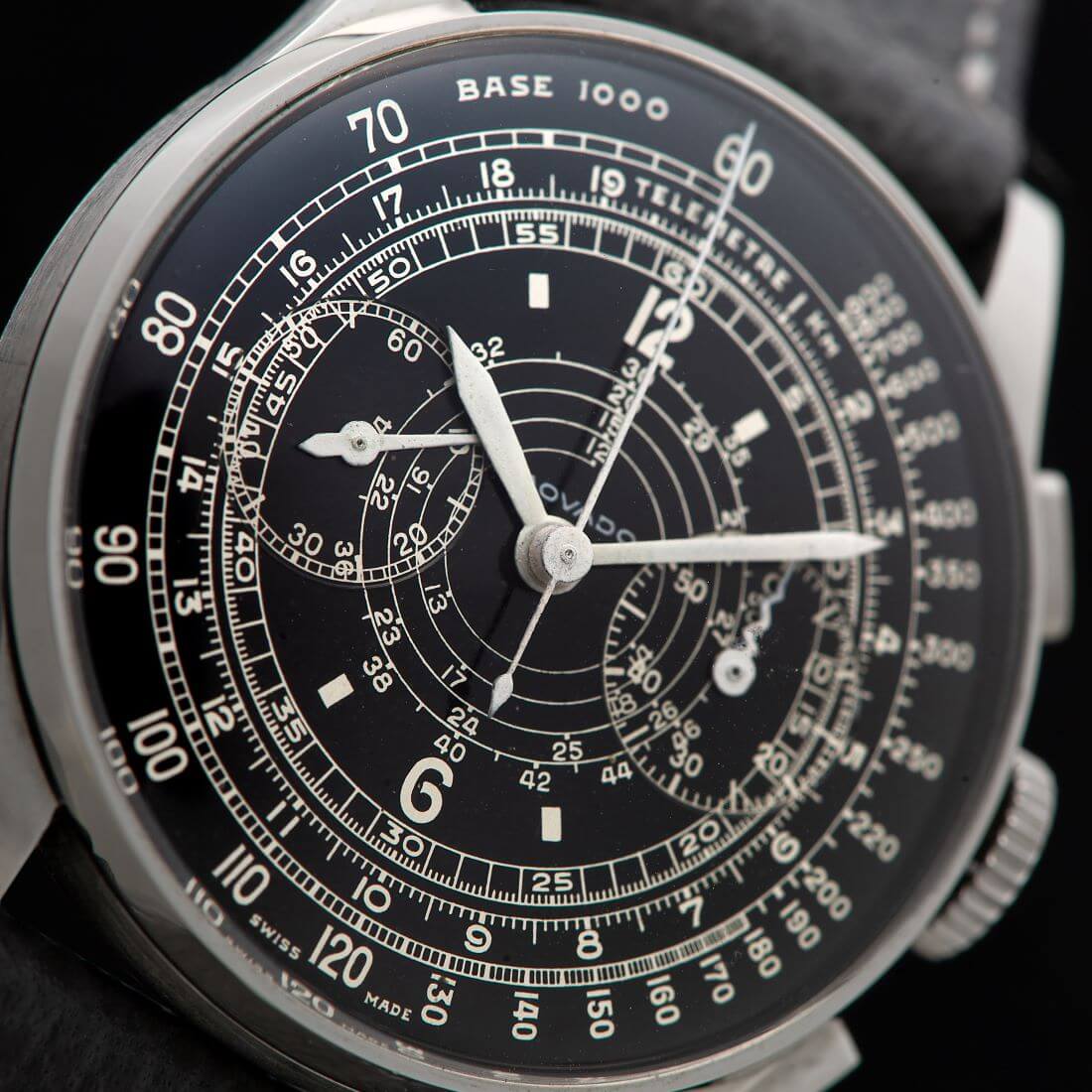 1930年代に始まる技術力を競う流れから、クロノグラフを自社に持つメーカーは耐久性を維持しながらのムーブメント小型化に挑み、23.7mm(10 1/2 型)の限界サイスにバルジュー、ジュネーブスポーツ、ユニバーサルジュネーブの3社が到達します(細かくはユニバーサルジュネーブが23.3mmと僅かながら最小)。