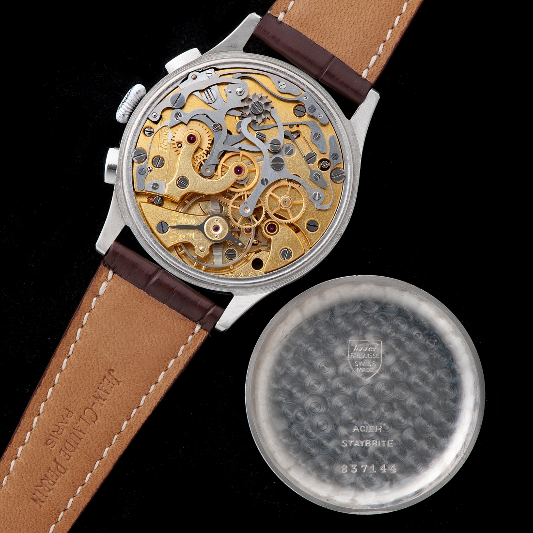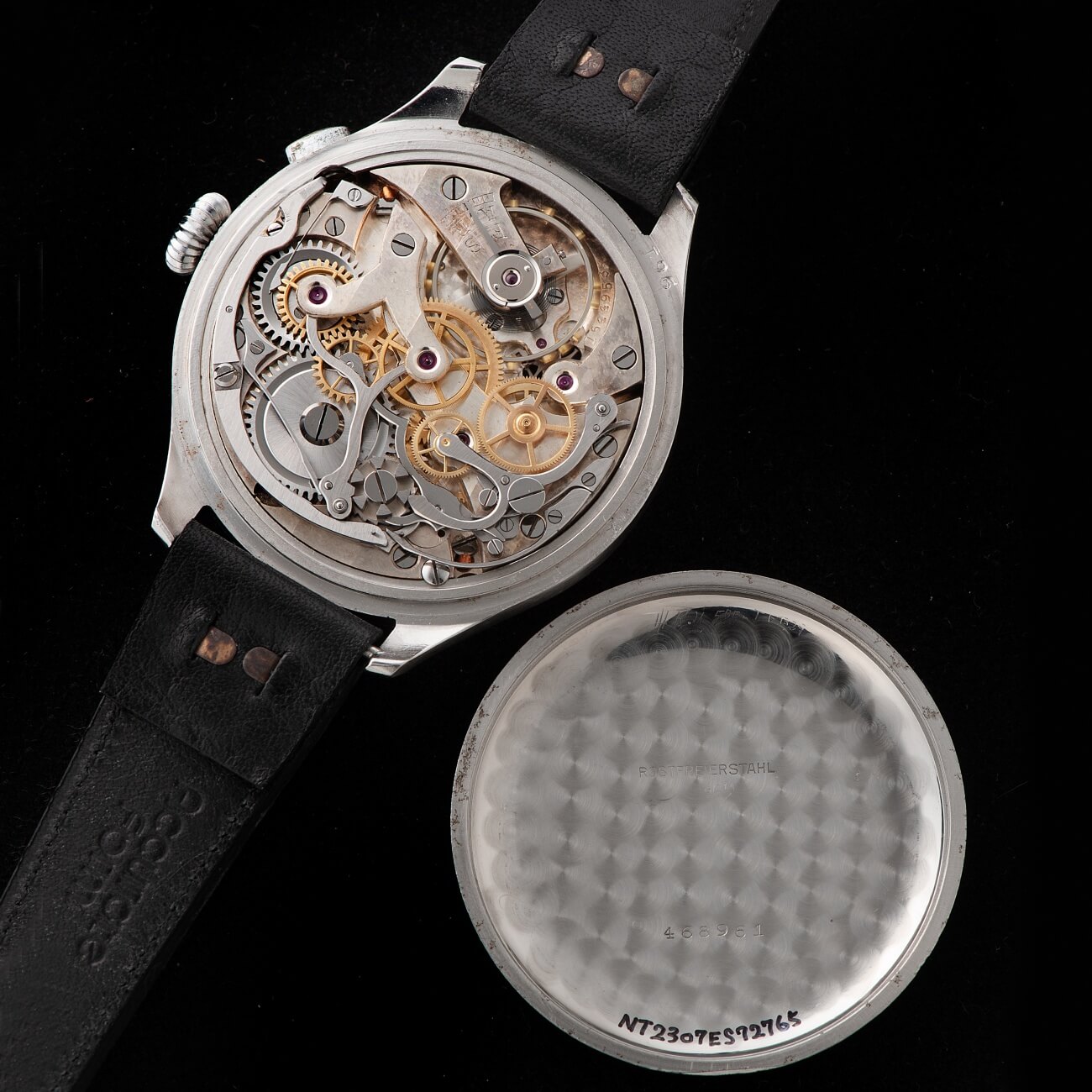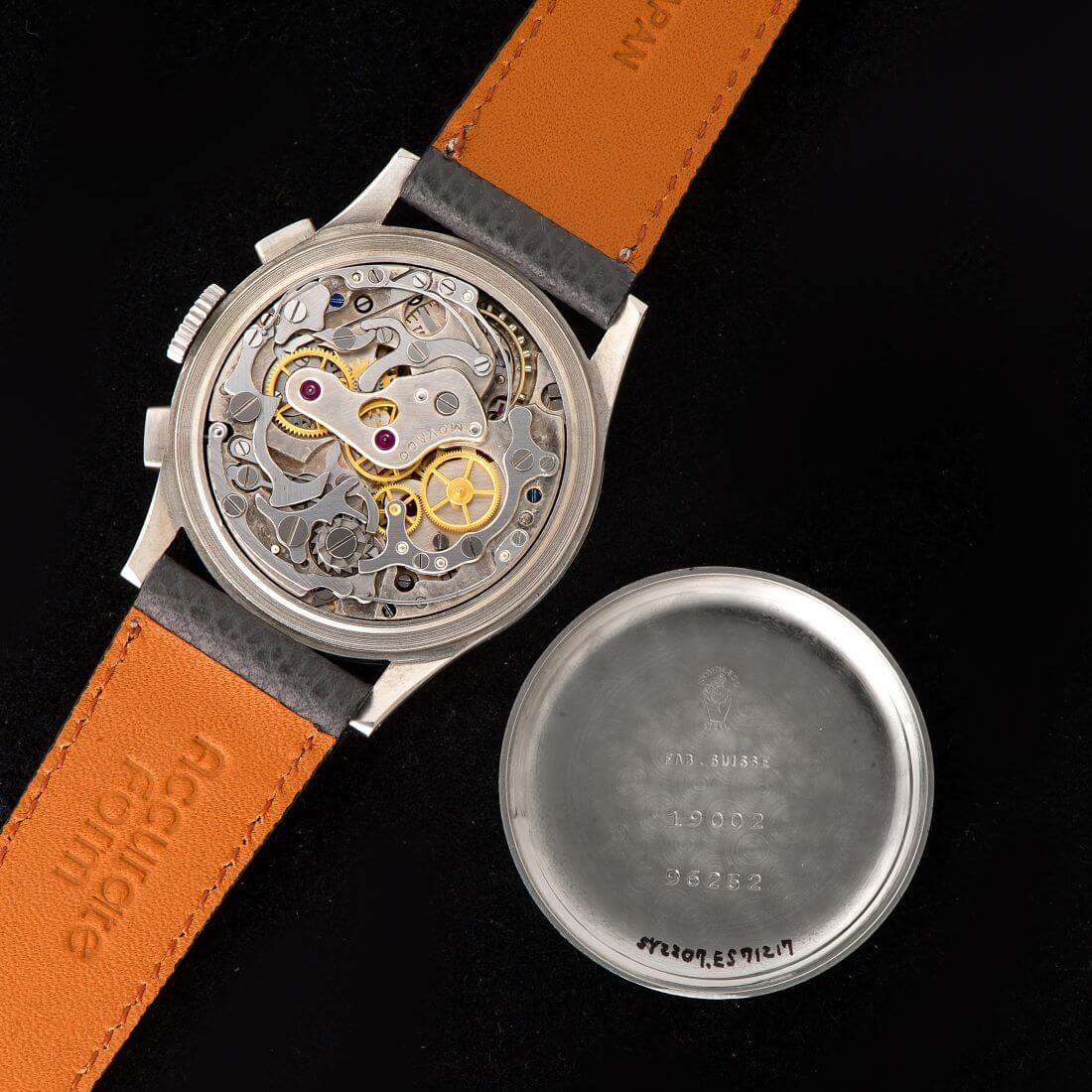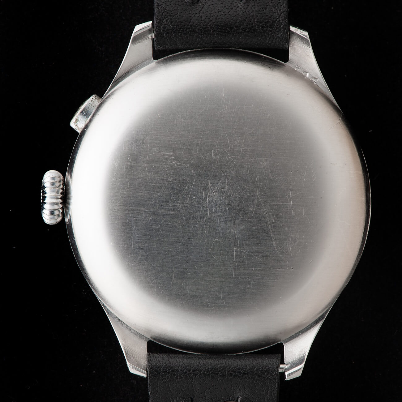 ケースシリアルから40年代でも前期の製造、クロノマットの中でも最初期のシリアル番号を持つ個体となり、バックケースに769のRef番号とムーブメントに銘が入る前のプロトタイプとも捉えられる初期個体です。