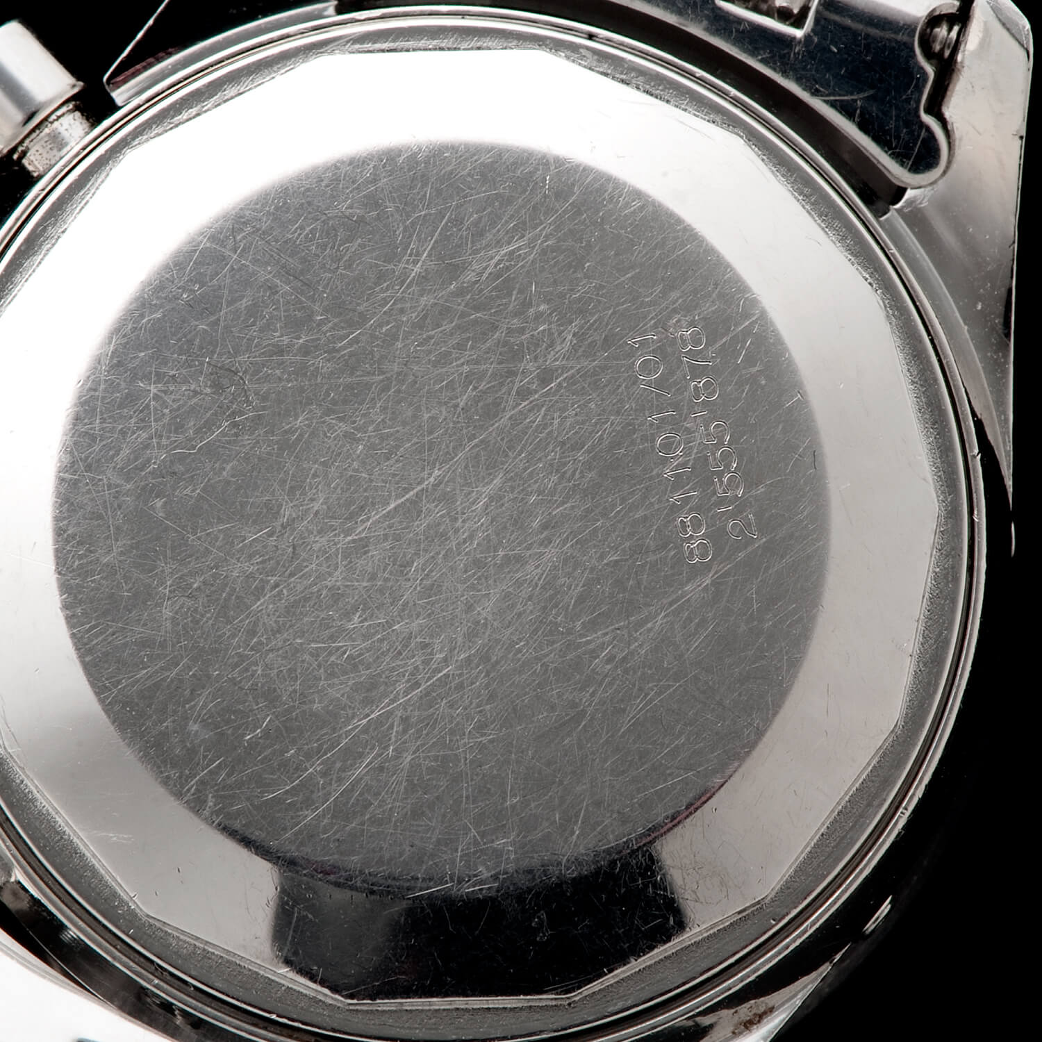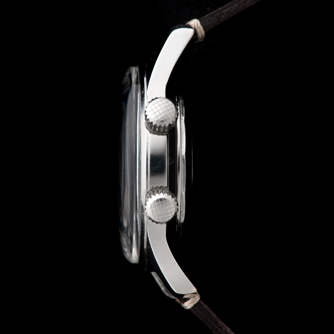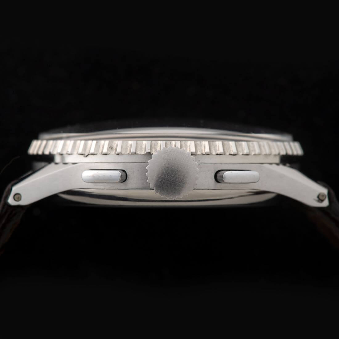 このモデルは、バリエーションとしてこちらの同軸のツープッシュタイプと、後年には4時位置にリセットボタンが付く通常のツープッシュタイプのケースがあり、ダイアルのカラーバリエーションとしてホワイトカラーも確認されております。