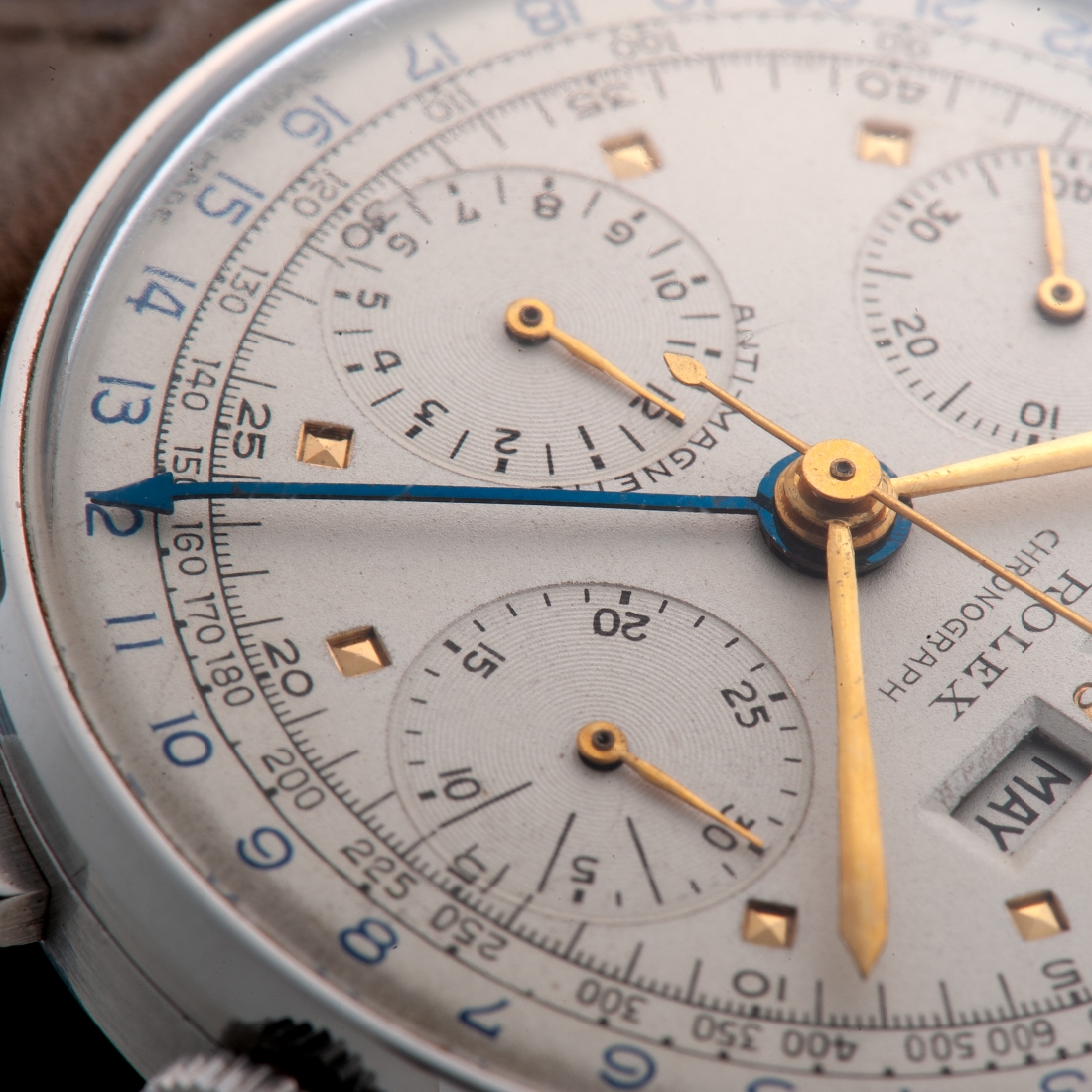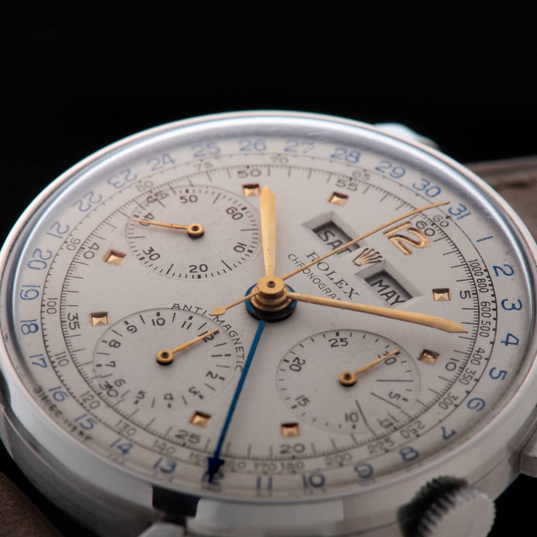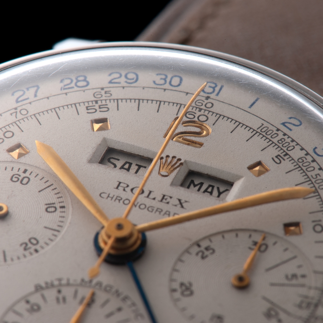 ムーブメントにはオイスターケースのキリー同様にValjoux72Cを搭載し、ROLEXではトリプルカレンダー機能を備えた唯一のクロノグラフです。
