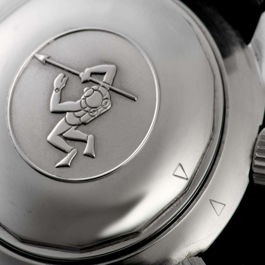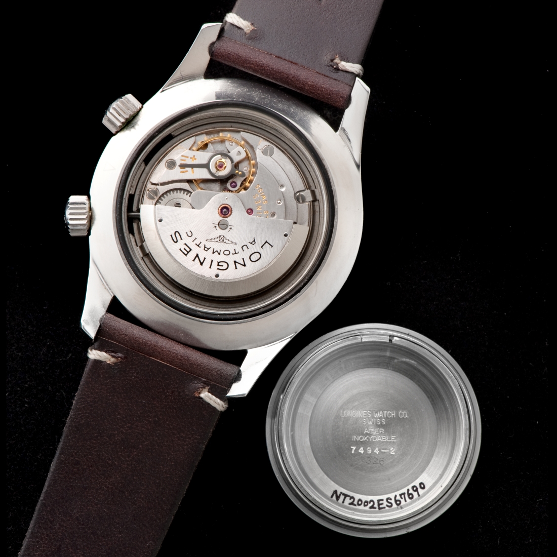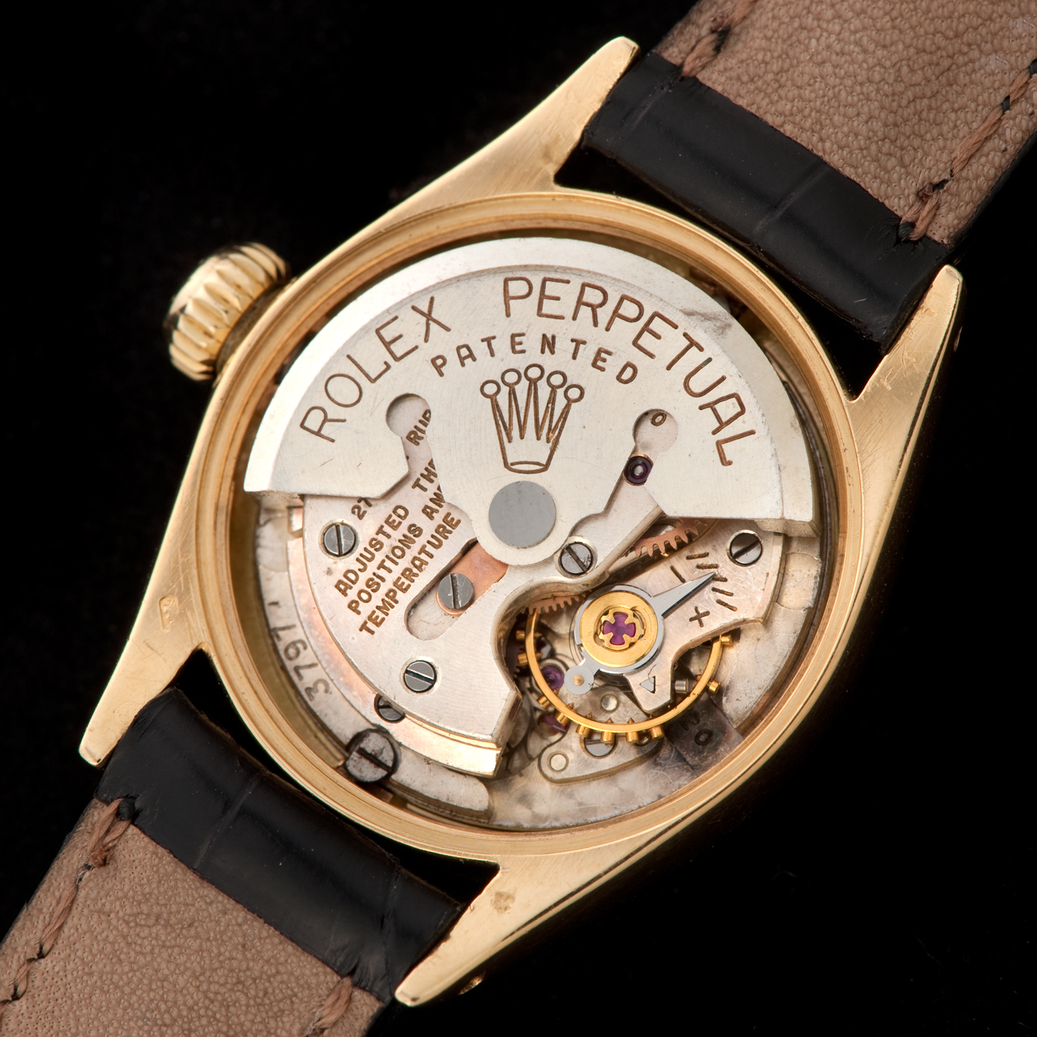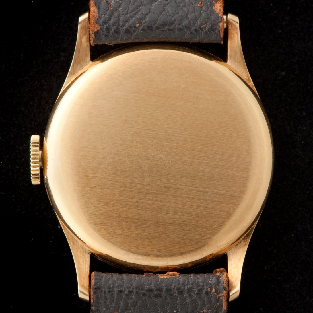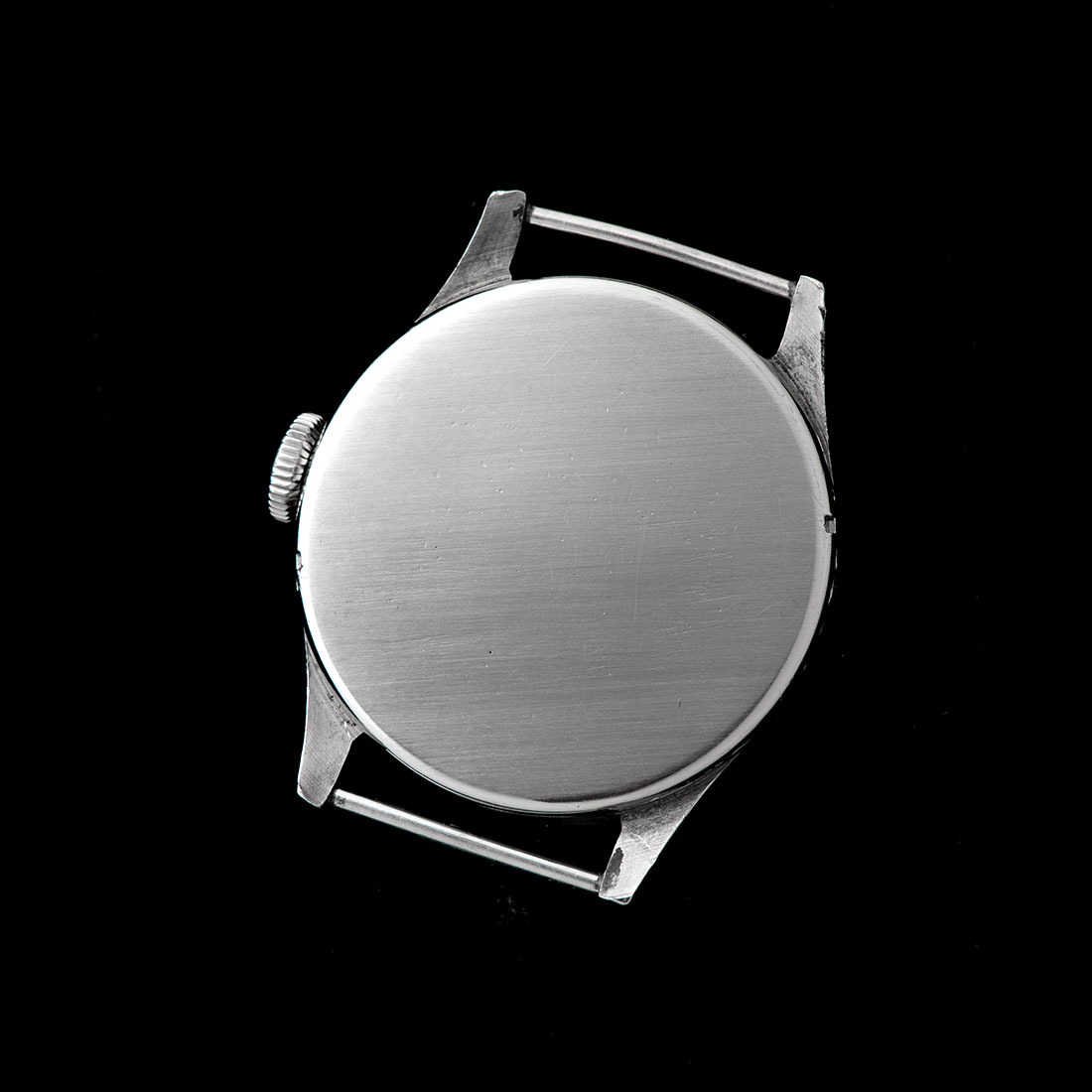 直径34mm強のケースに9 3/4のNAを搭載、ローターの厚みがあるため、裏蓋の縁から中央に大きく膨らんだ造形が後のモデルとは異なるディテールです。