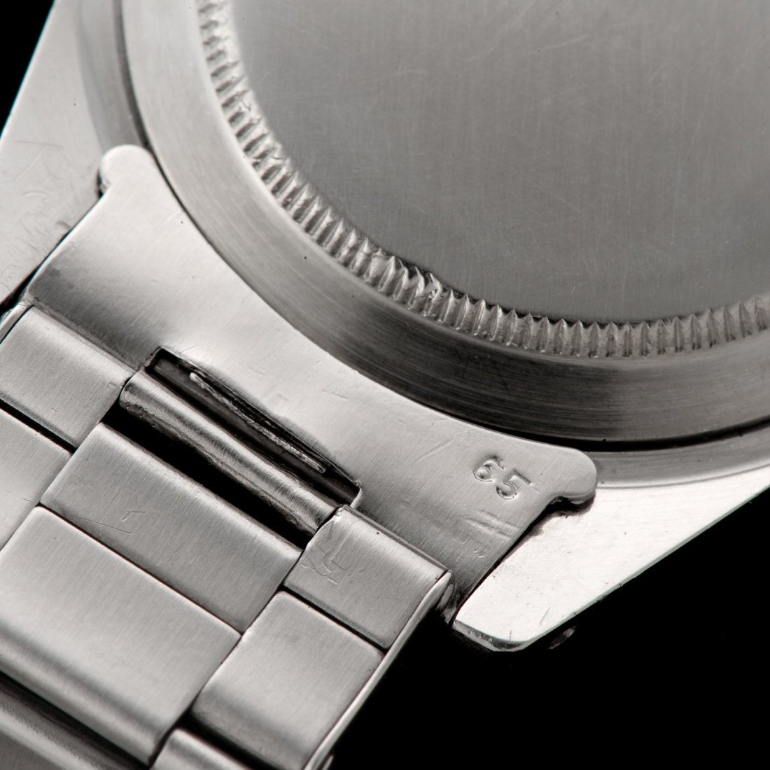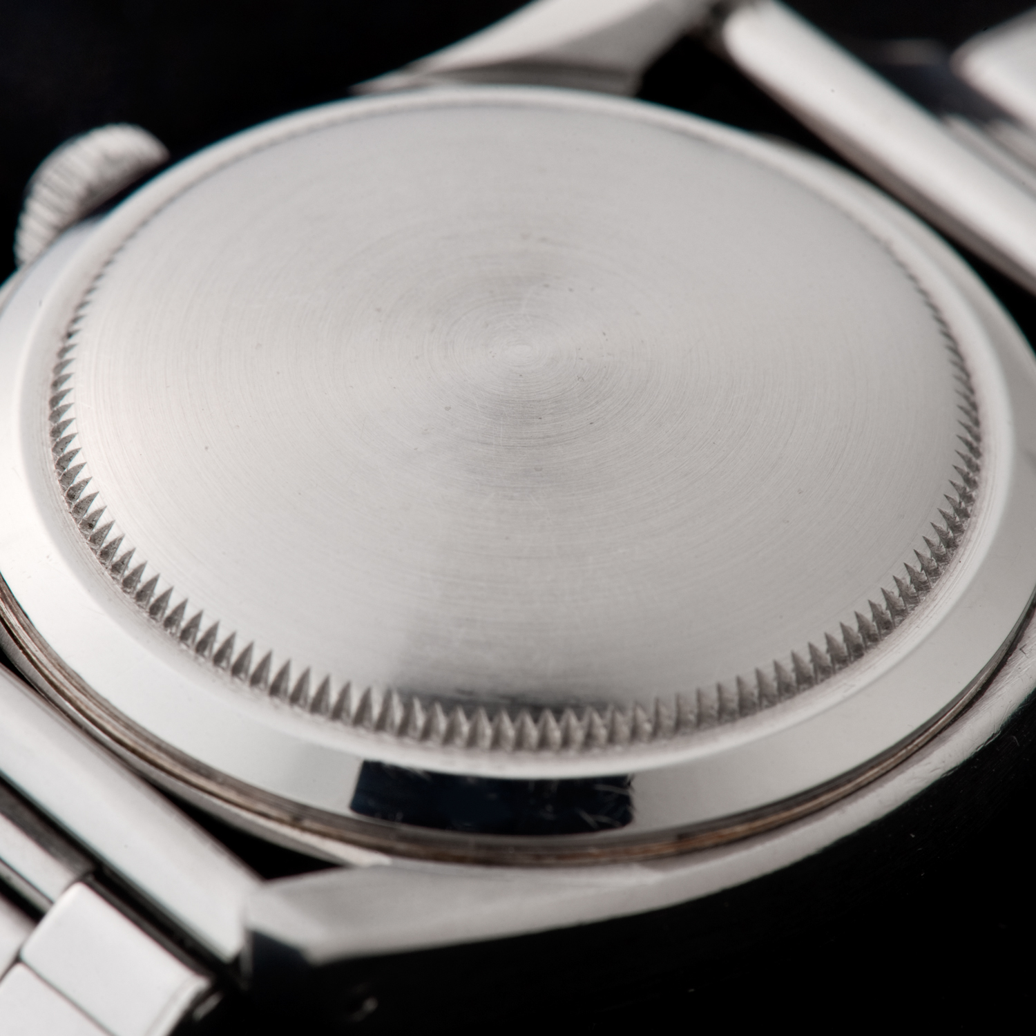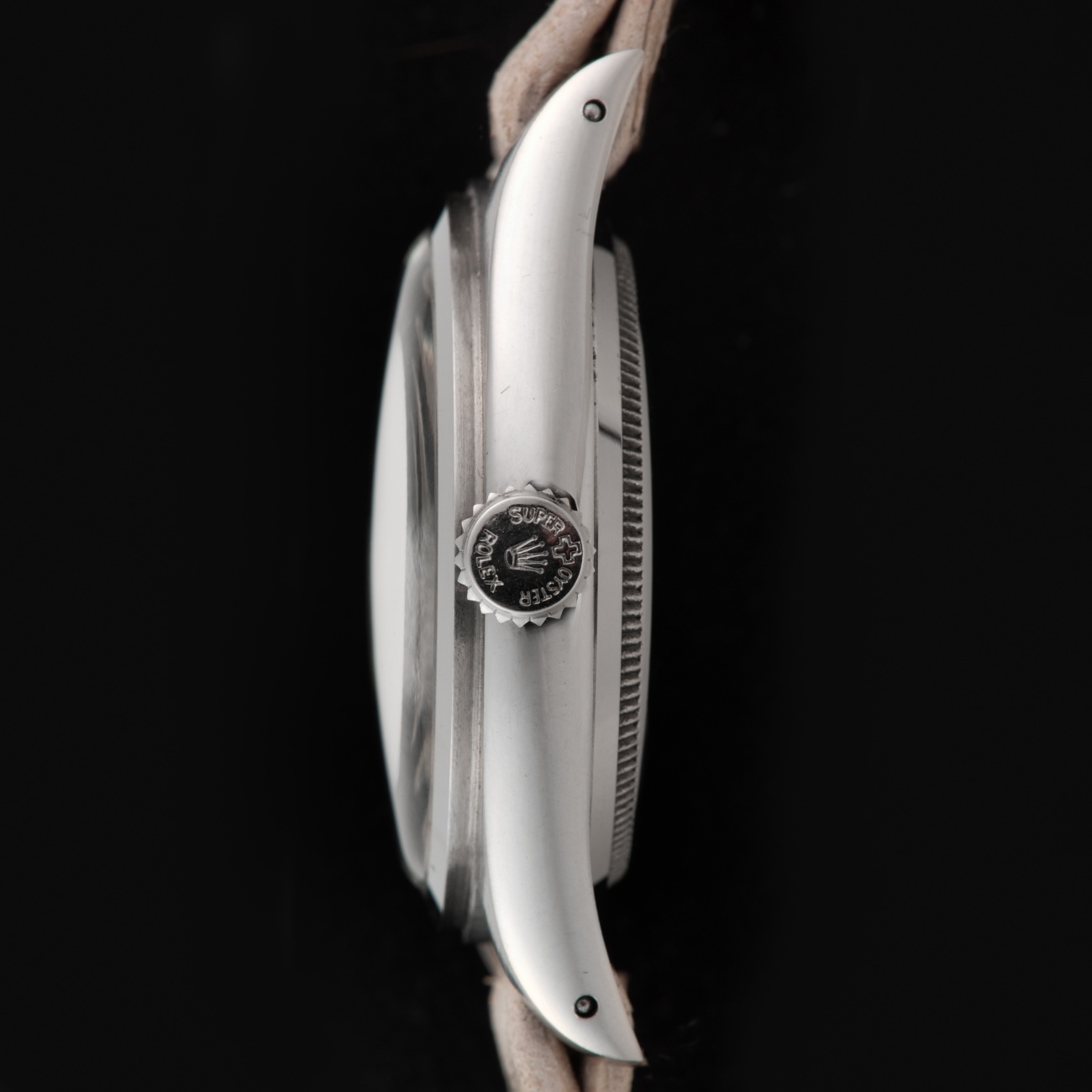 ノンオイスターの非防水ケースにも関わらず、目立つ焼けや変色、キズなどのない素晴らしい保存状態を維持し、ケースシェイプ、ラグの面取り、裏蓋の刻印まで素晴らしい状態です。
