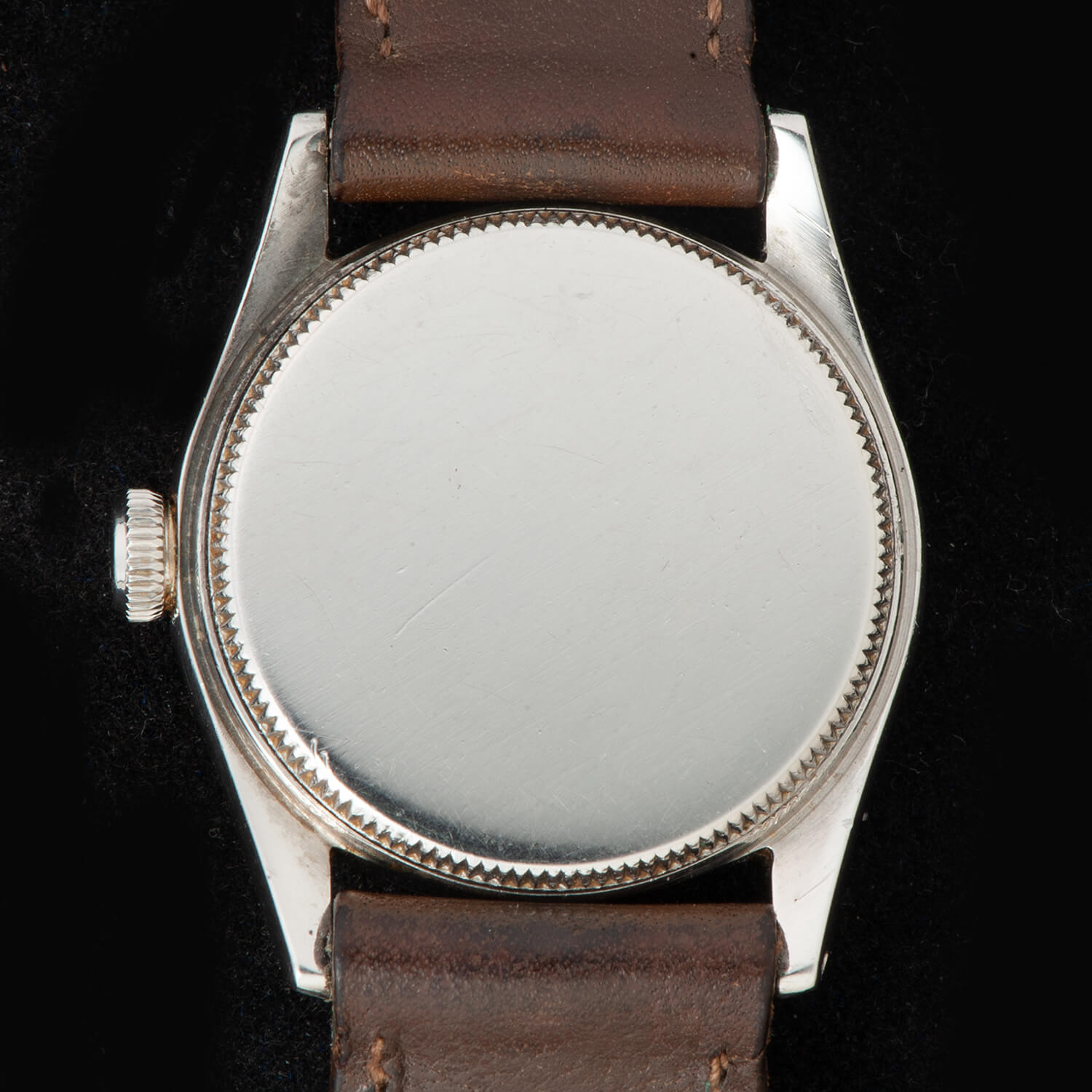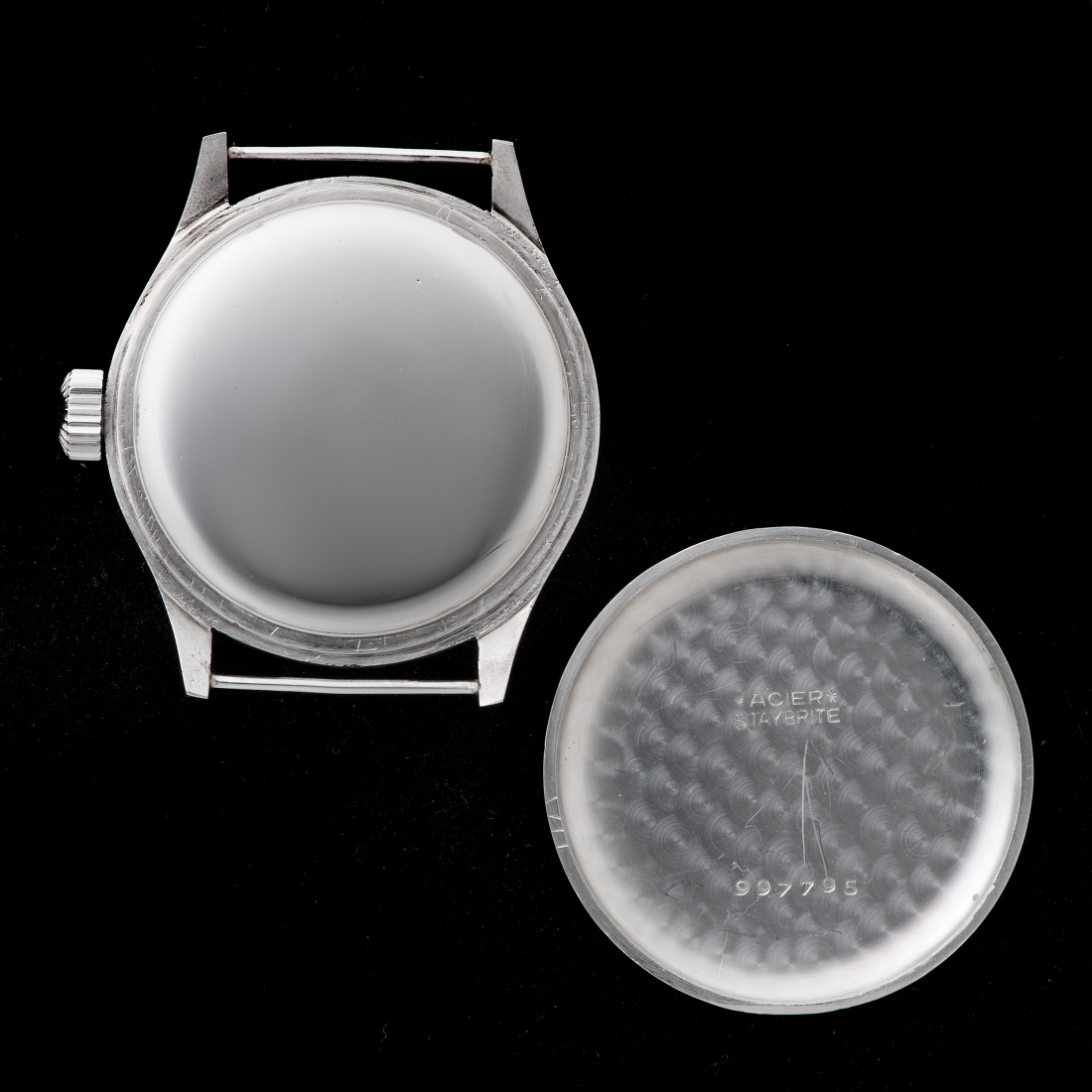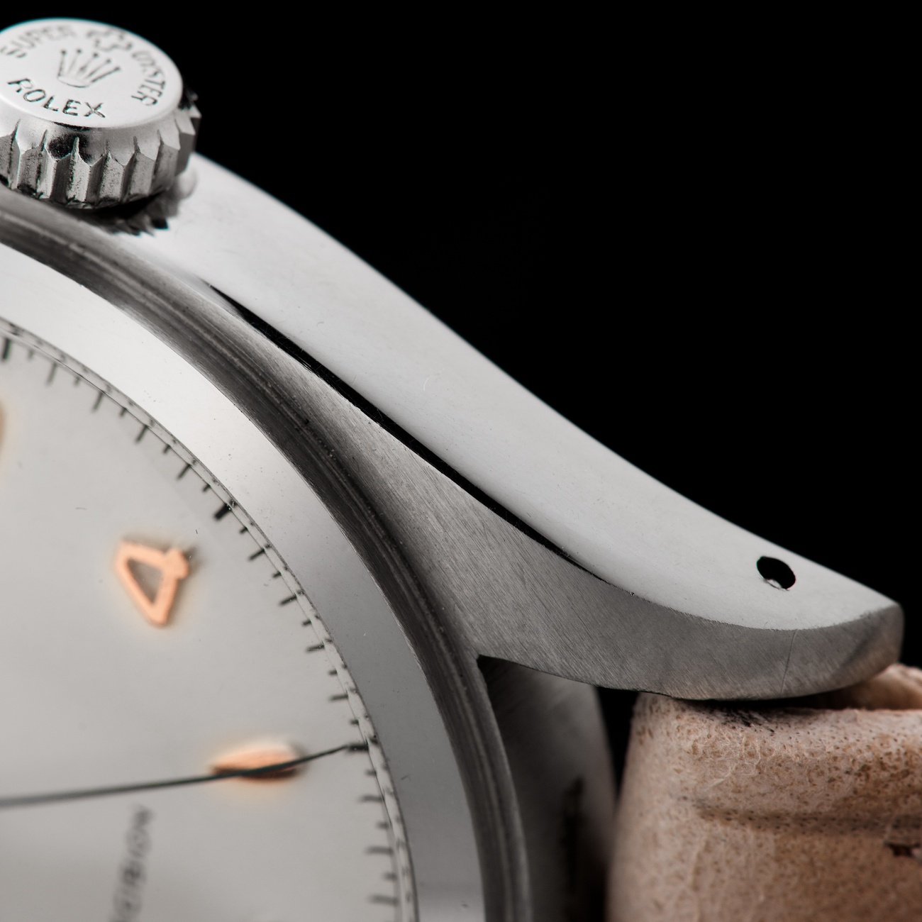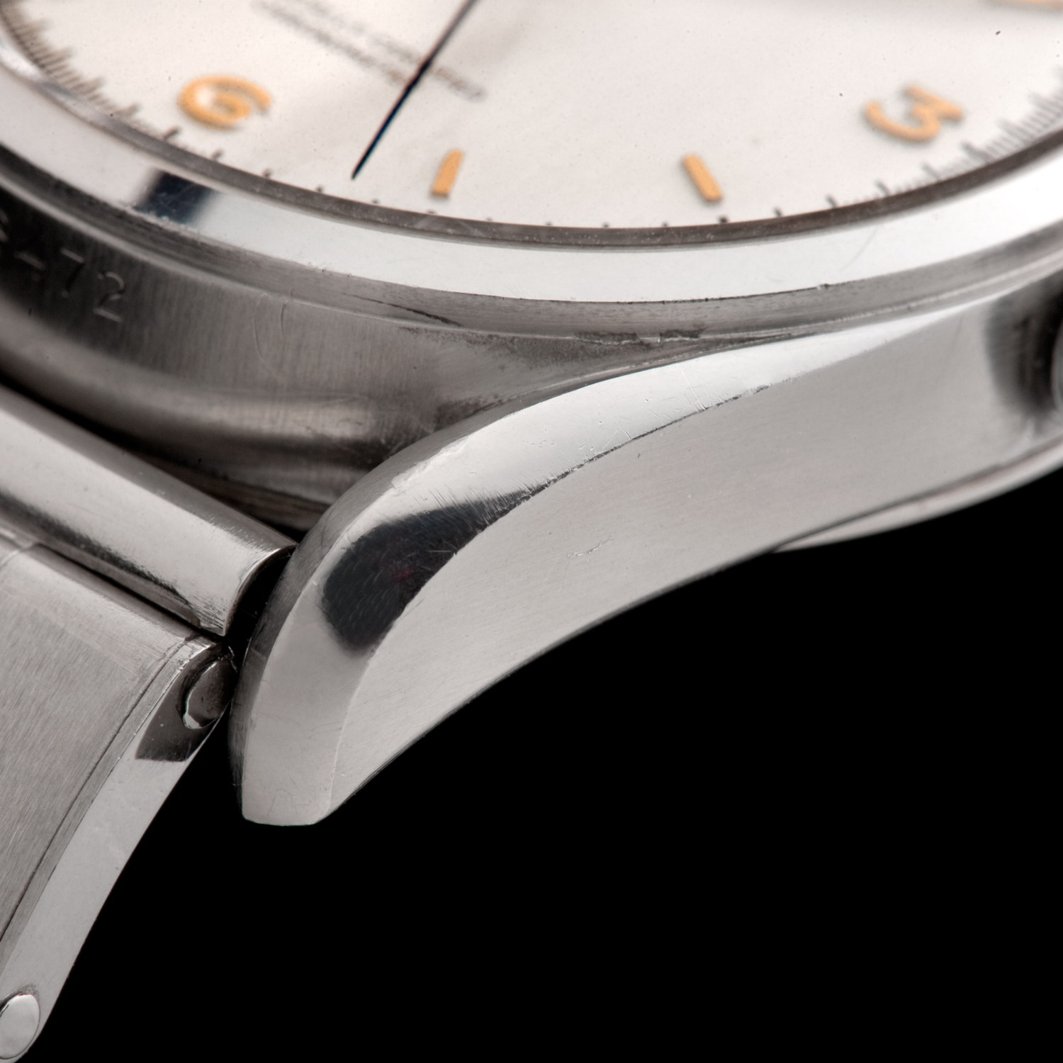ノンオイスターの非防水ケースにも関わらず、目立つ焼けや変色、キズなどのない素晴らしい保存状態を維持し、ケースシェイプ、ラグの面取り、裏蓋の刻印まで素晴らしい状態です。