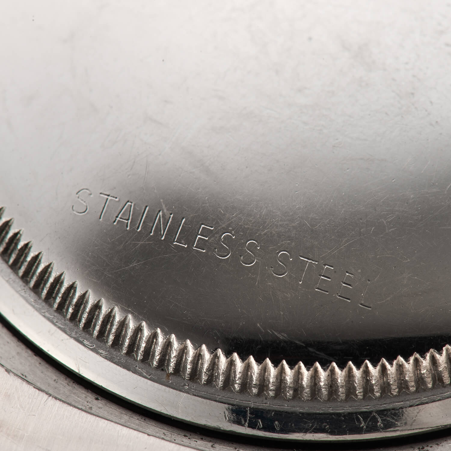 SUBMARINER表記のないダイアルは当初のブラックからややブラウンチェンジし、きれいなブラックとはまた異なったヴィンテージらしい表情となっております。ケースはエッジをしっかりと残した素晴らしい状態で、裏蓋のSTAINLESS STEELの刻印もクリスプです。ムーブメントにはビッグバブル用のA260を搭載しています。