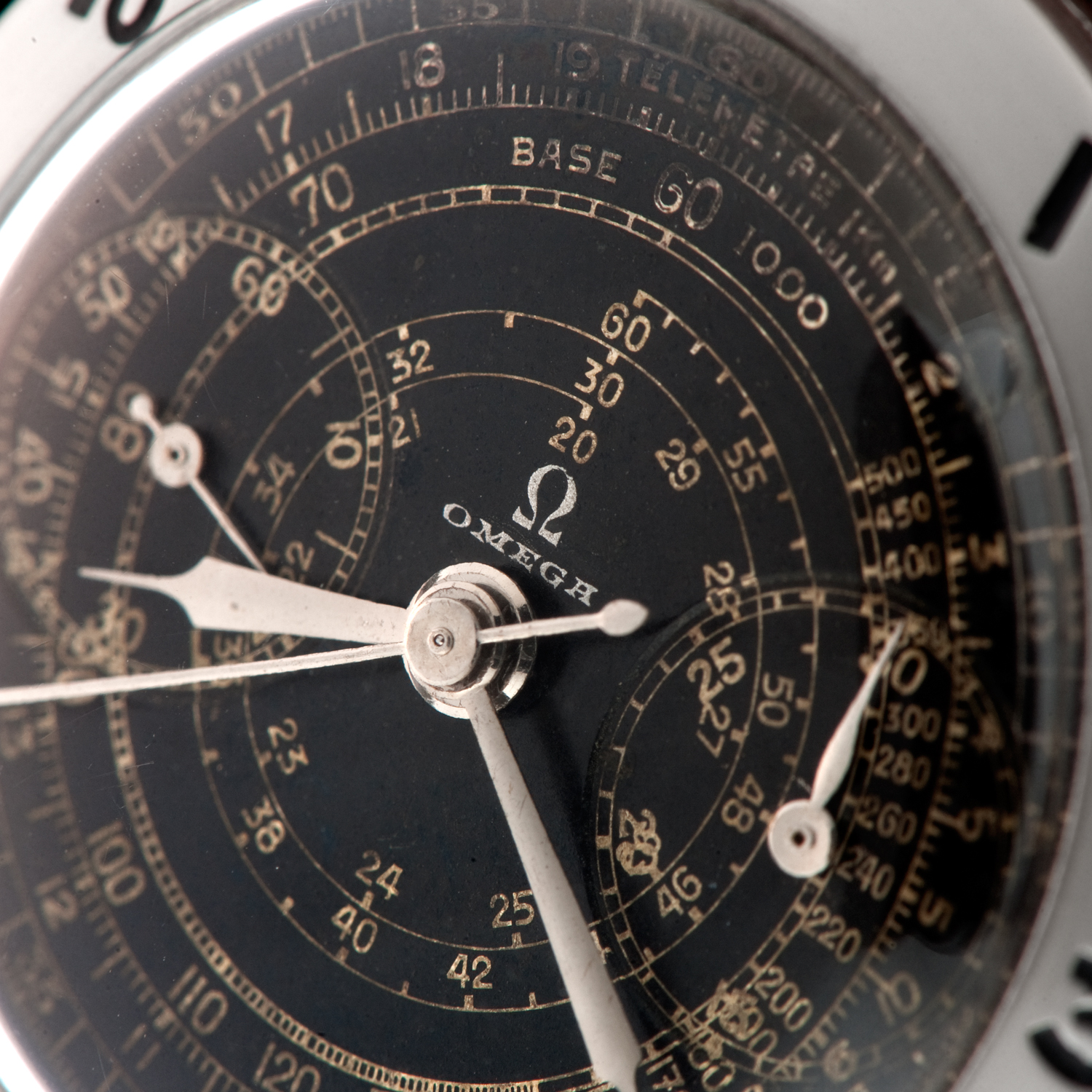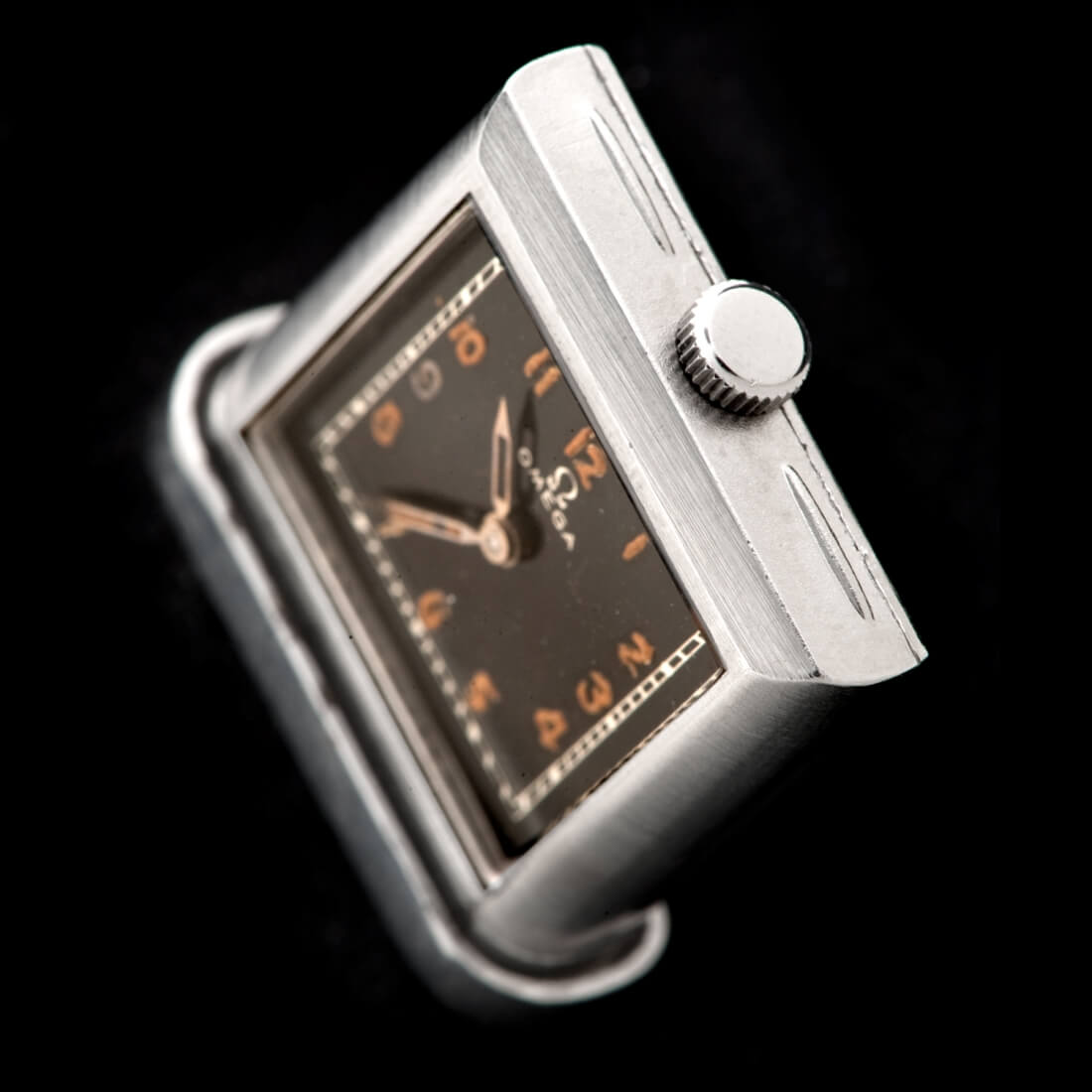 近年復刻モデルもリリースされてはございますが、オリジナルならではの質感、視認性の高いハンド、斜体のOMEGAロゴなど、随所に30年代ならではの雰囲気を感じさせる素晴らしい逸品です。