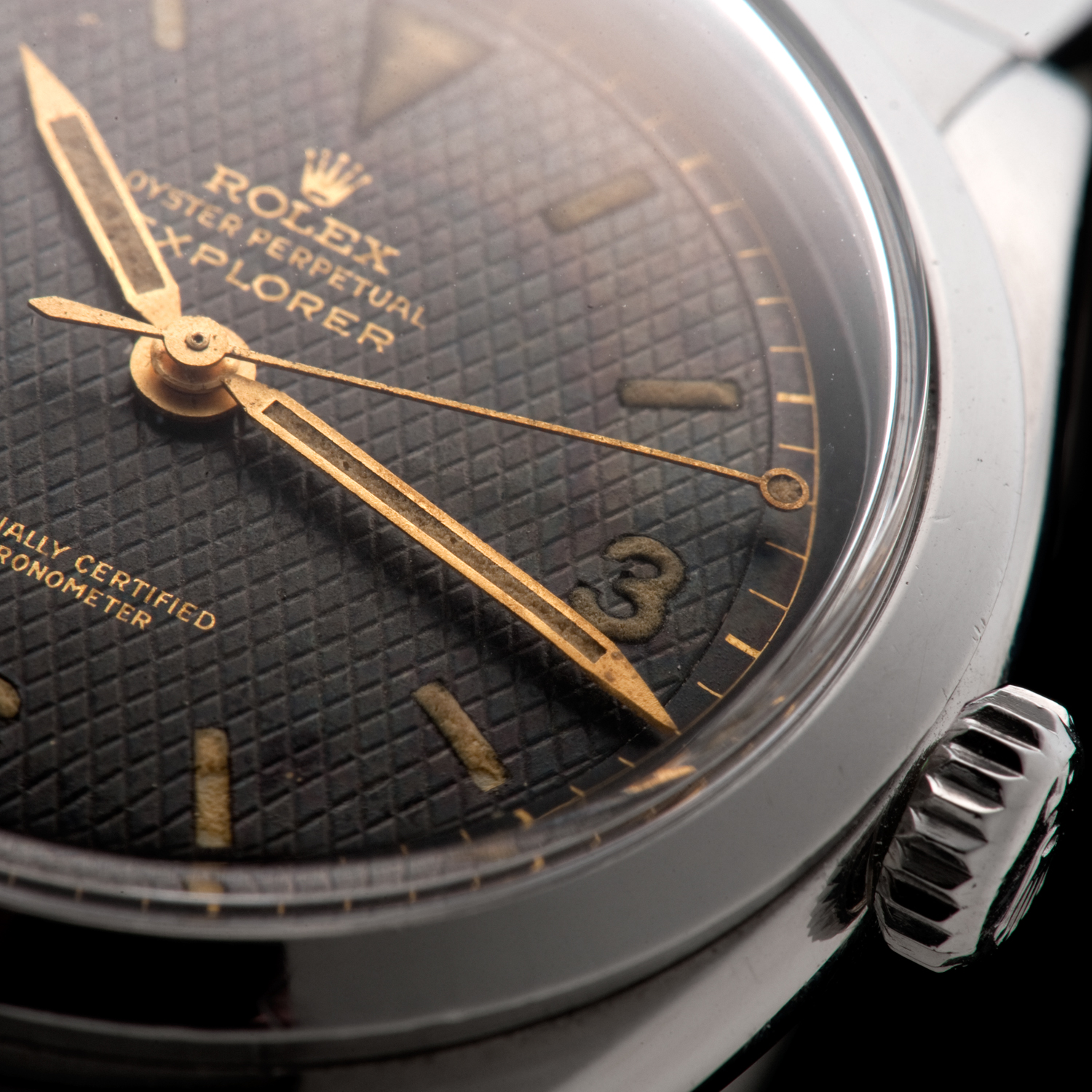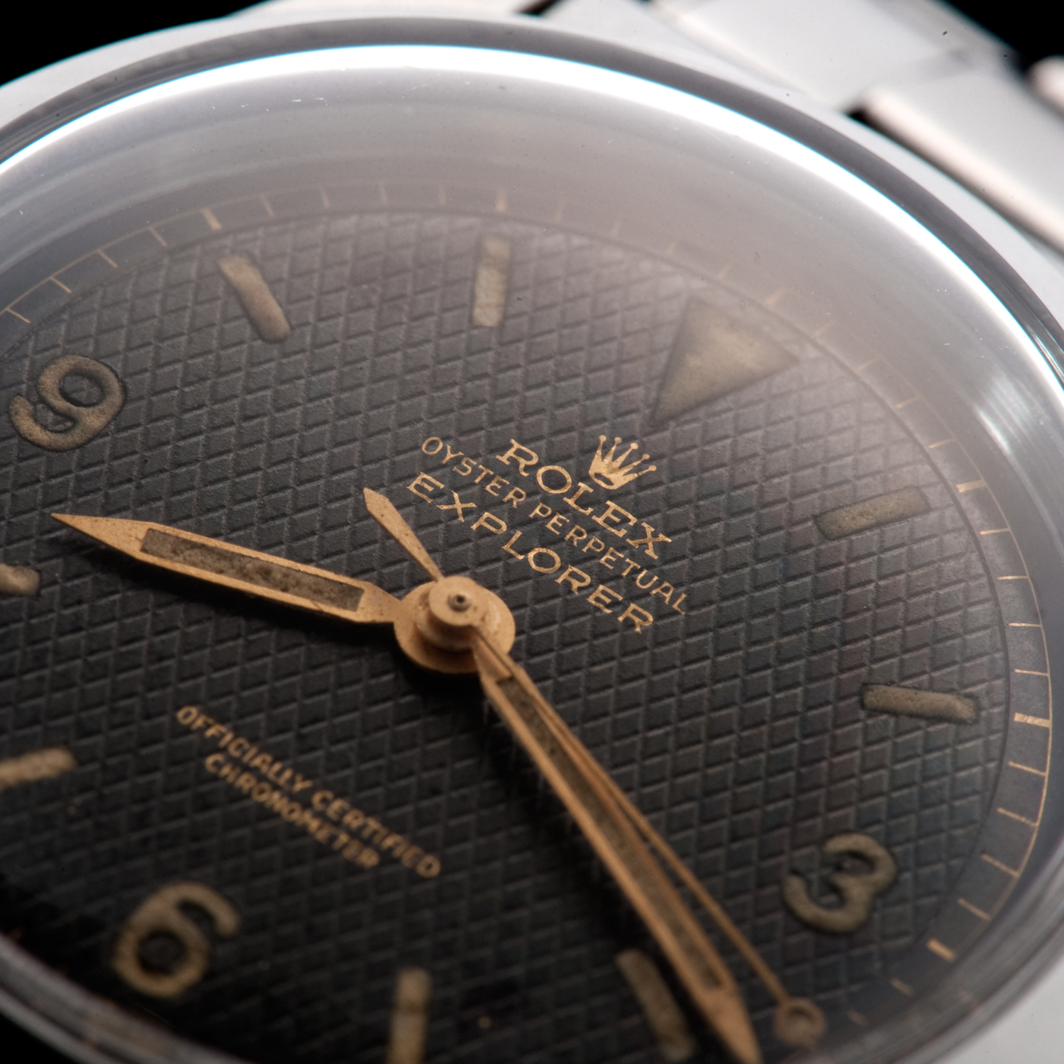エクスプローラ第一世代のクロノメーターモデルであるRef.6350、その中でも最も貴重で人気の高いハニカムダイアルです。