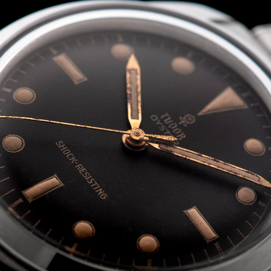 Ref.7923がリリースされたとされている1950年代中頃、こちらのオイスターの12…から始まるケースシリアルもほぼ同時期にあたり、チュードルサブマリーナ黎明期の片鱗が垣間見えるようなモデルです。