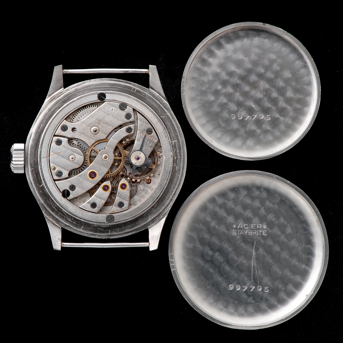 ケースポリッシュもほとんどかかっておらず、オリジナルの+マークのリューズが残り、ムーブメントも大変美しいコンディションです。