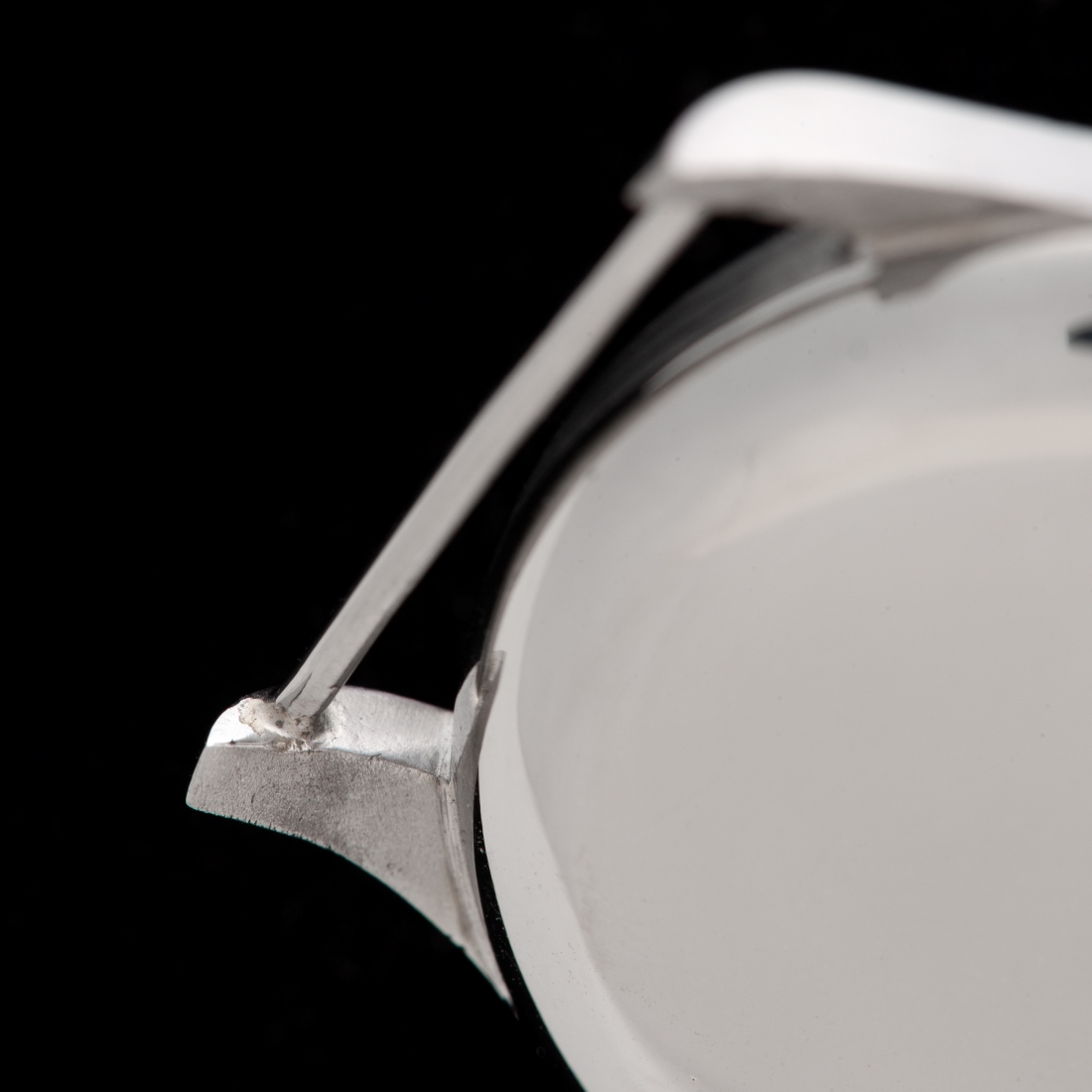 ファンシーラグに合わせてベゼルなどは曲線を活かした鏡面仕上げが施され、唯一バックケースのフラット部分のみにメリハリを感じるヘアライン仕上げが入ります。