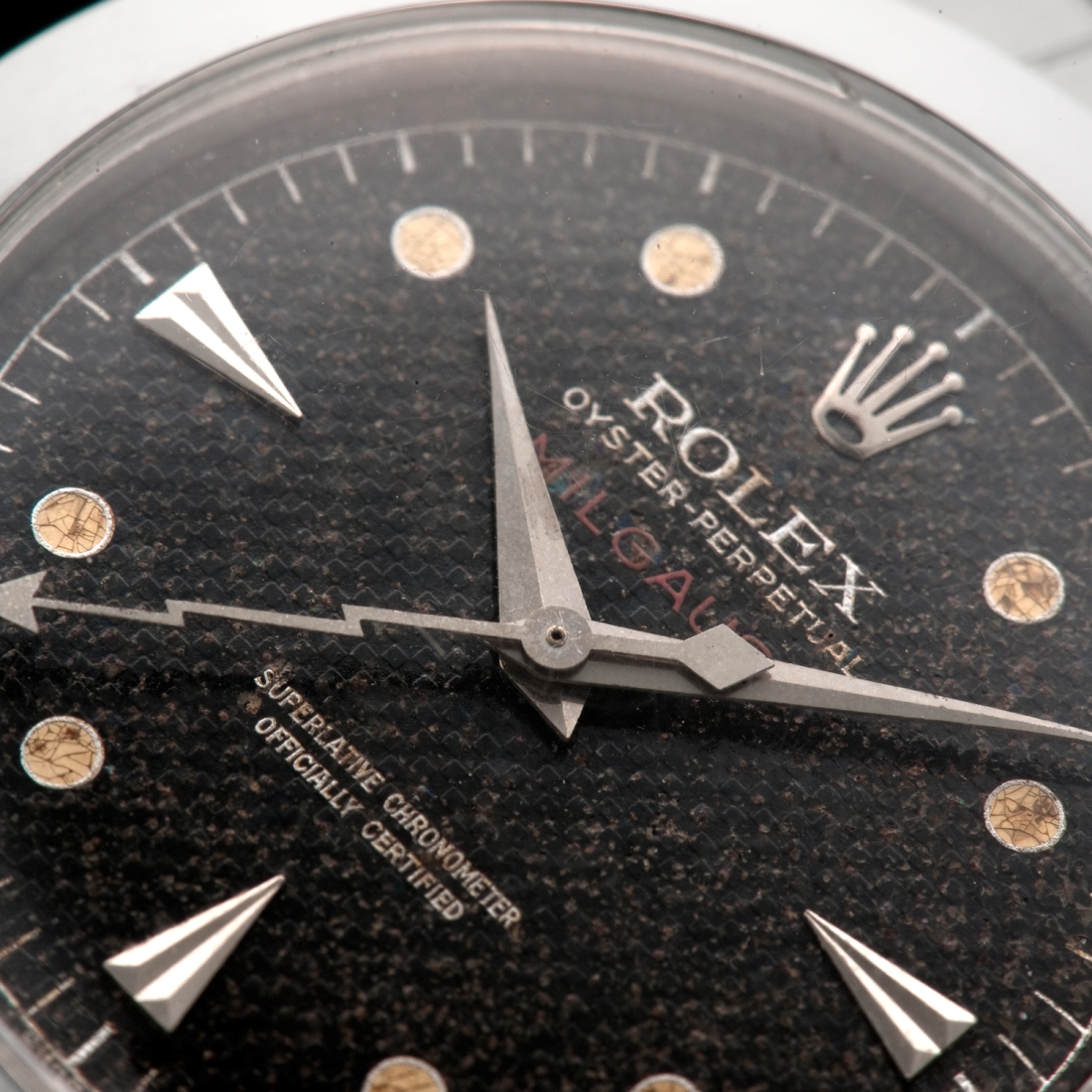 現代まで続くROLEXを代表するシリーズ”DATE JUST”において、最初期モデル、ブラックダイアルとブレスの希少性はもちろん、コンディションとオリジナリティーの高さからトップクラスの逸品に違いありません。