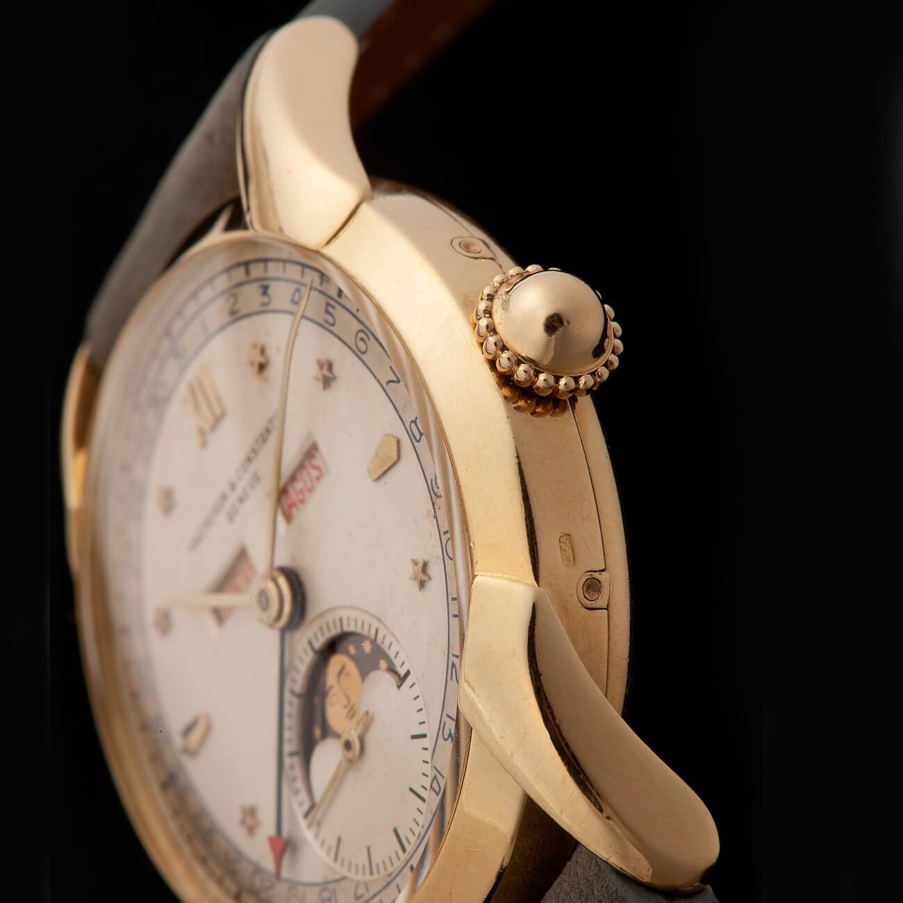 ケースシリアルから1951年の製造で、年式の同じブレスが付く、カレンダー付き自動巻きファーストムーブメントを備える逸品です。