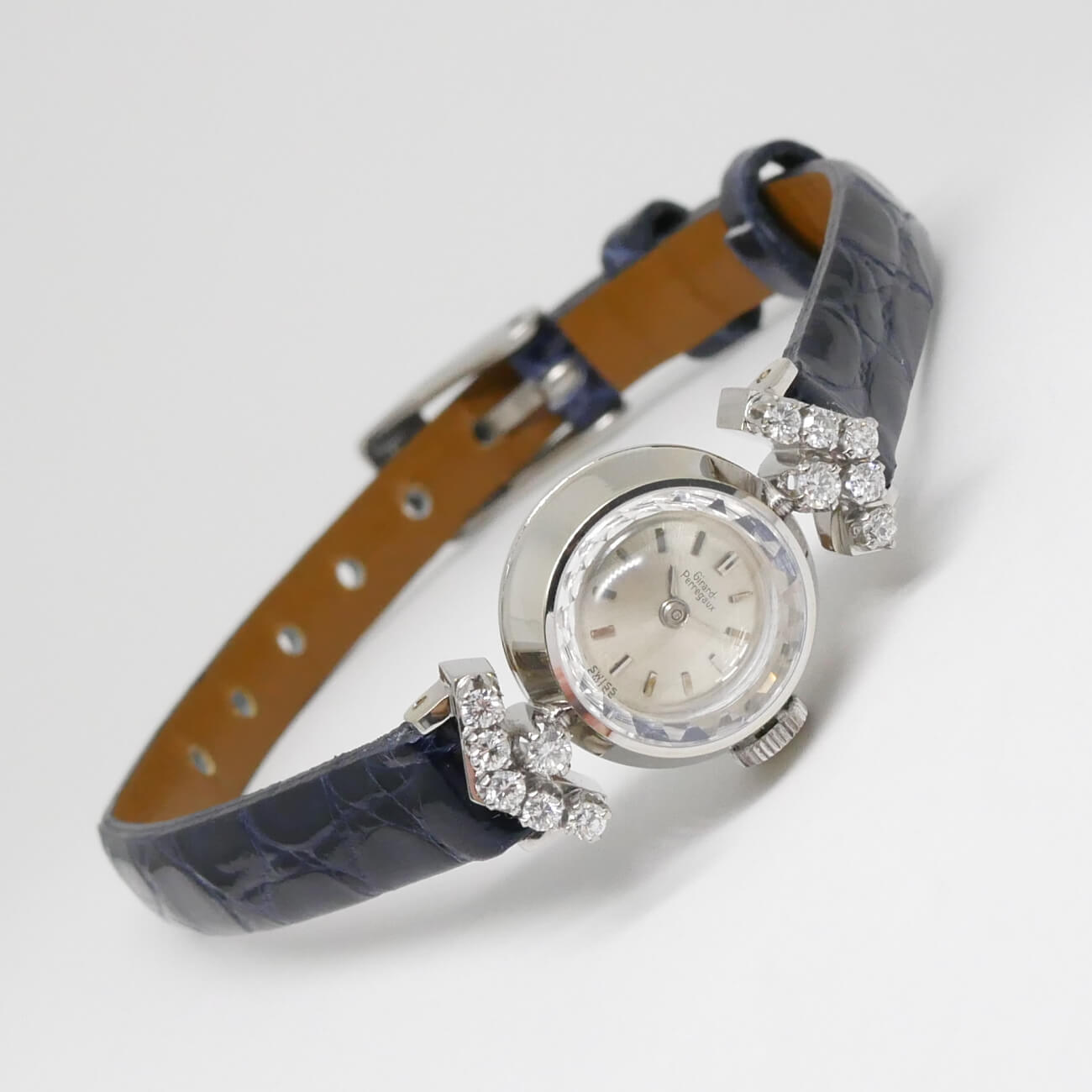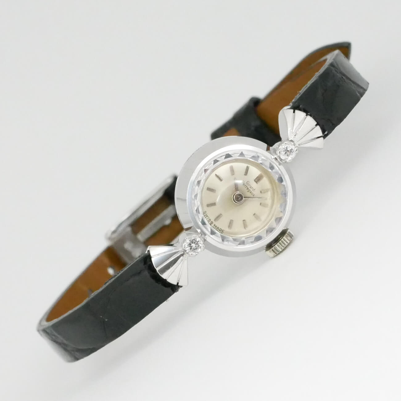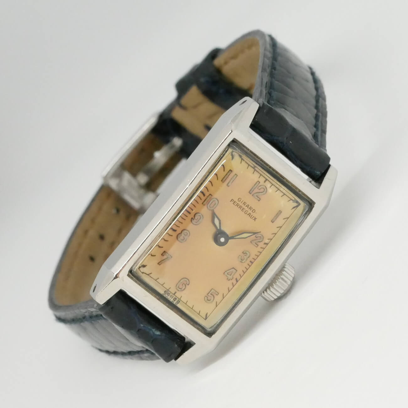 現在はスイスの名高きマニファクチュールブランドのジラール ペルゴ。日本との交流の歴史は古く、1860年代に日本でスイス時計商館を開設している。アンティーク市場においてはモデルやバリエーションが少なくレア度の高いブランドとされているが、複雑機構のクロノグラフや独自の自動巻きモデルGYROMATICを始め、宝飾時計まで存在します。