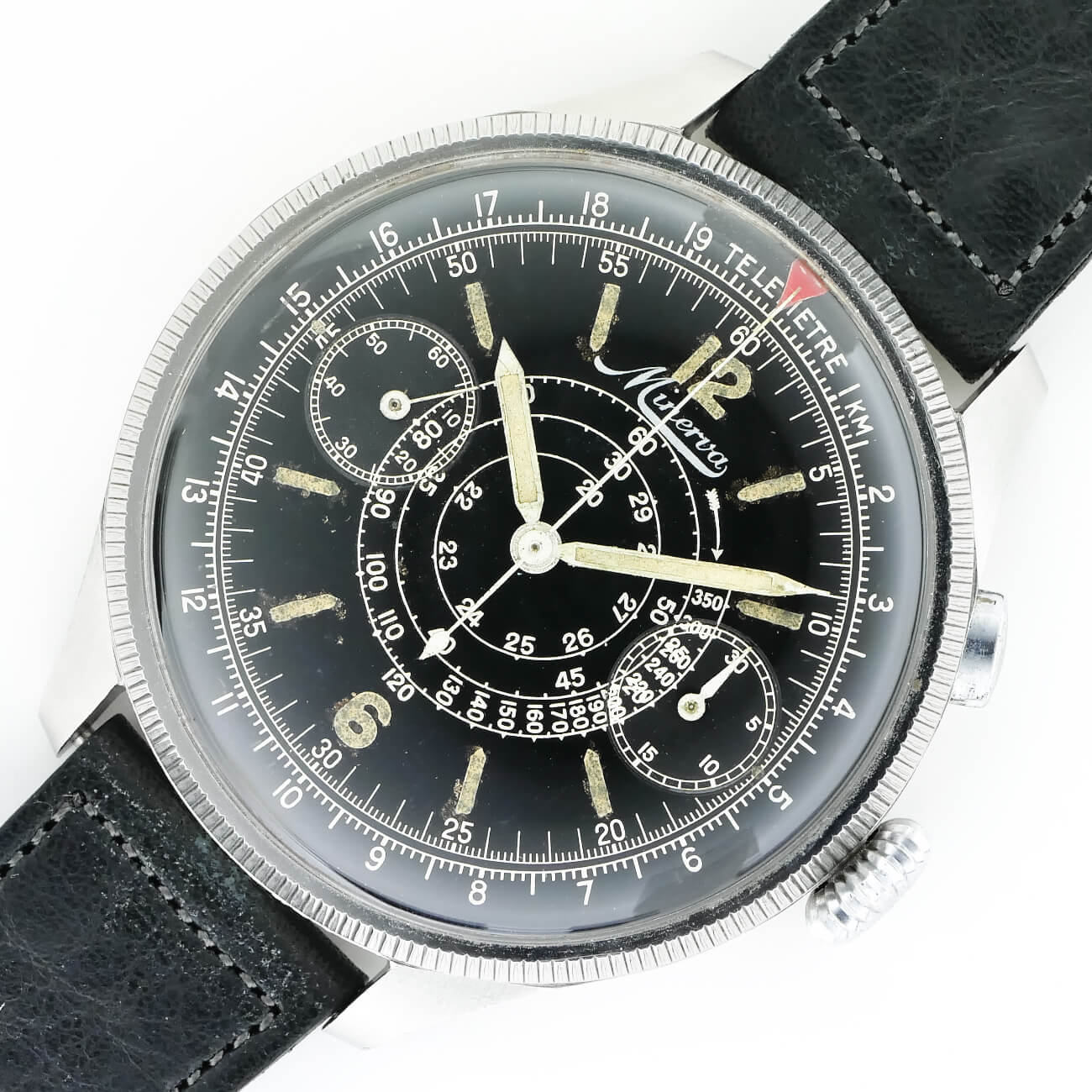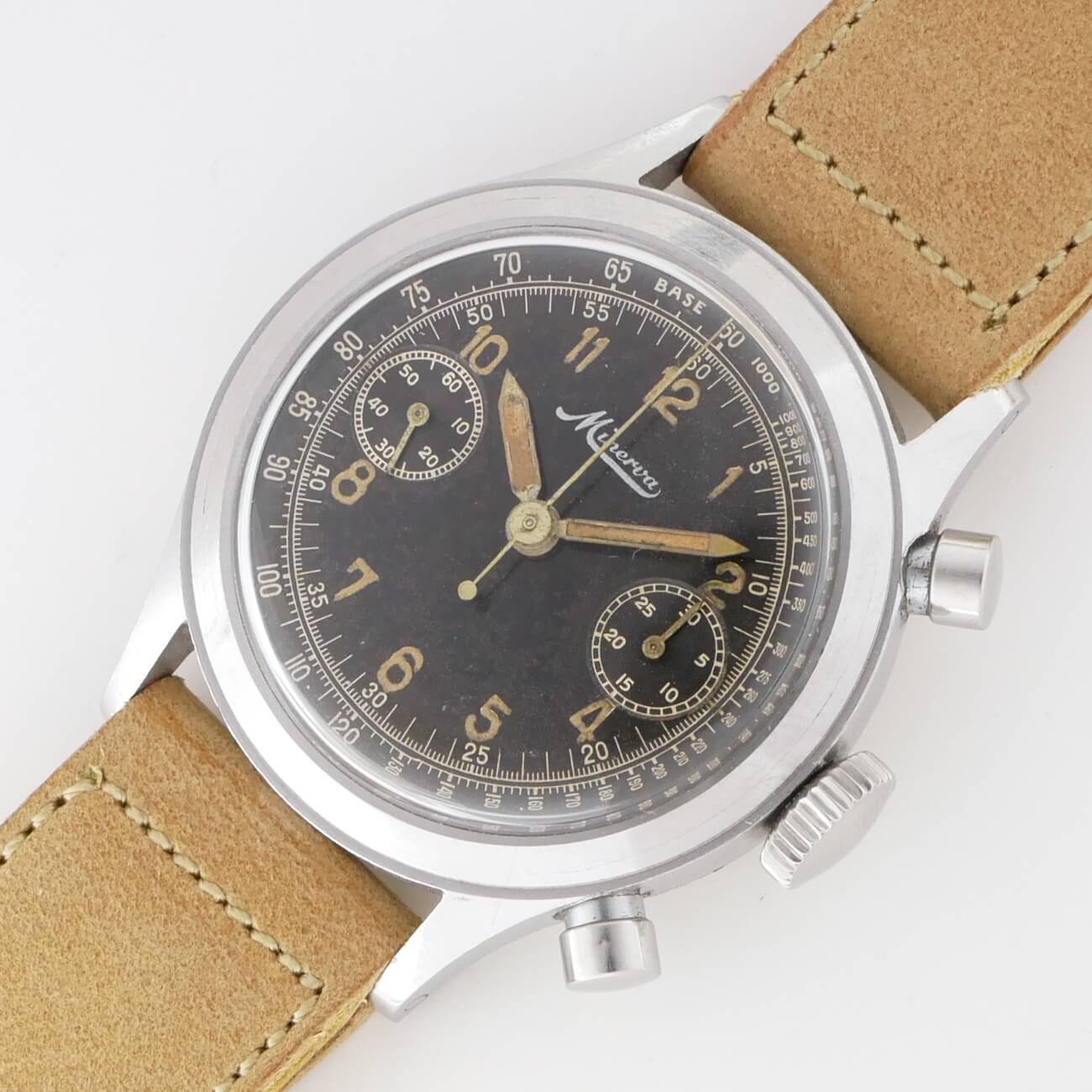 良質なクロノグラフを自社で開発し、アンティークを代表するクロノグラフメーカーの一つで、ミリタリーへも供給していました。ツーレジスタークロノ・cal.13-20CHが特に人気が高く、プッシャーが極端に離れた様相が独特です。また、秀逸なレイアウトから“ピタゴラス”の名が付いた手巻きムーブメント・cal.48もコレクタブルな名機です。