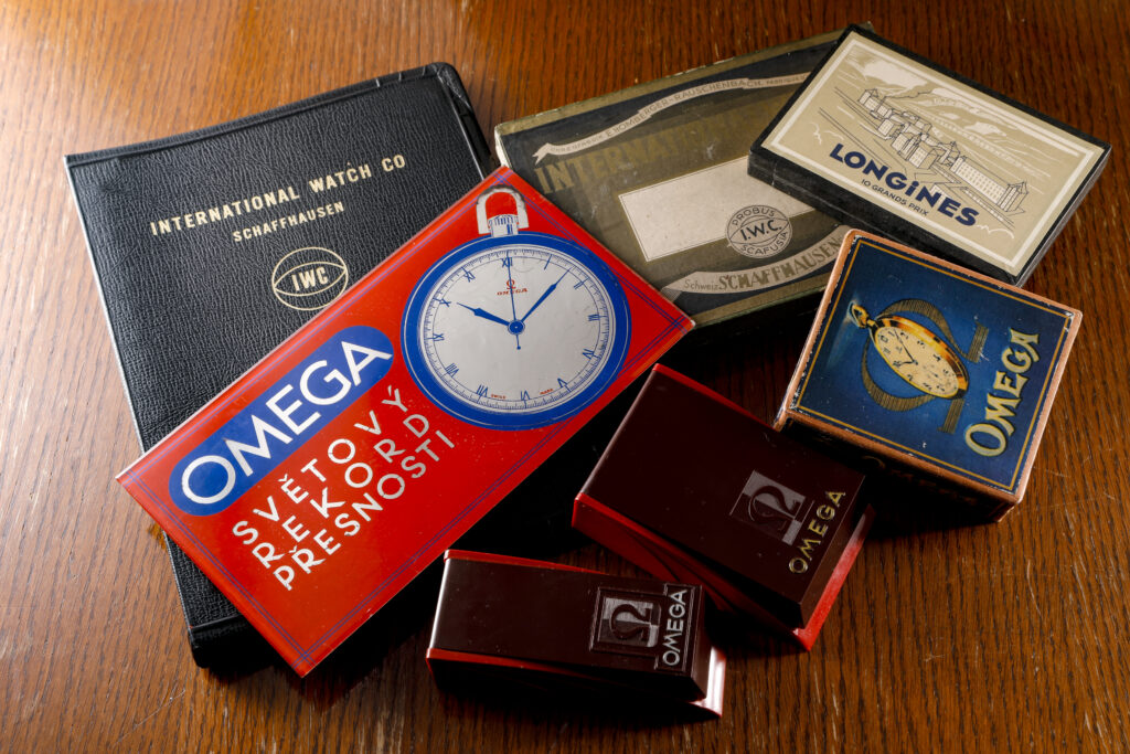 古い時計の化粧箱やパンフレット、広告宣伝用のディスプレイなどの付属品やユニークなノベルティーなど、これまで弊社で海外買付の際などで長年かけて集めてきた貴重なグッズコレクションをウェブサイトや丸の内店の店頭で随時販売します。