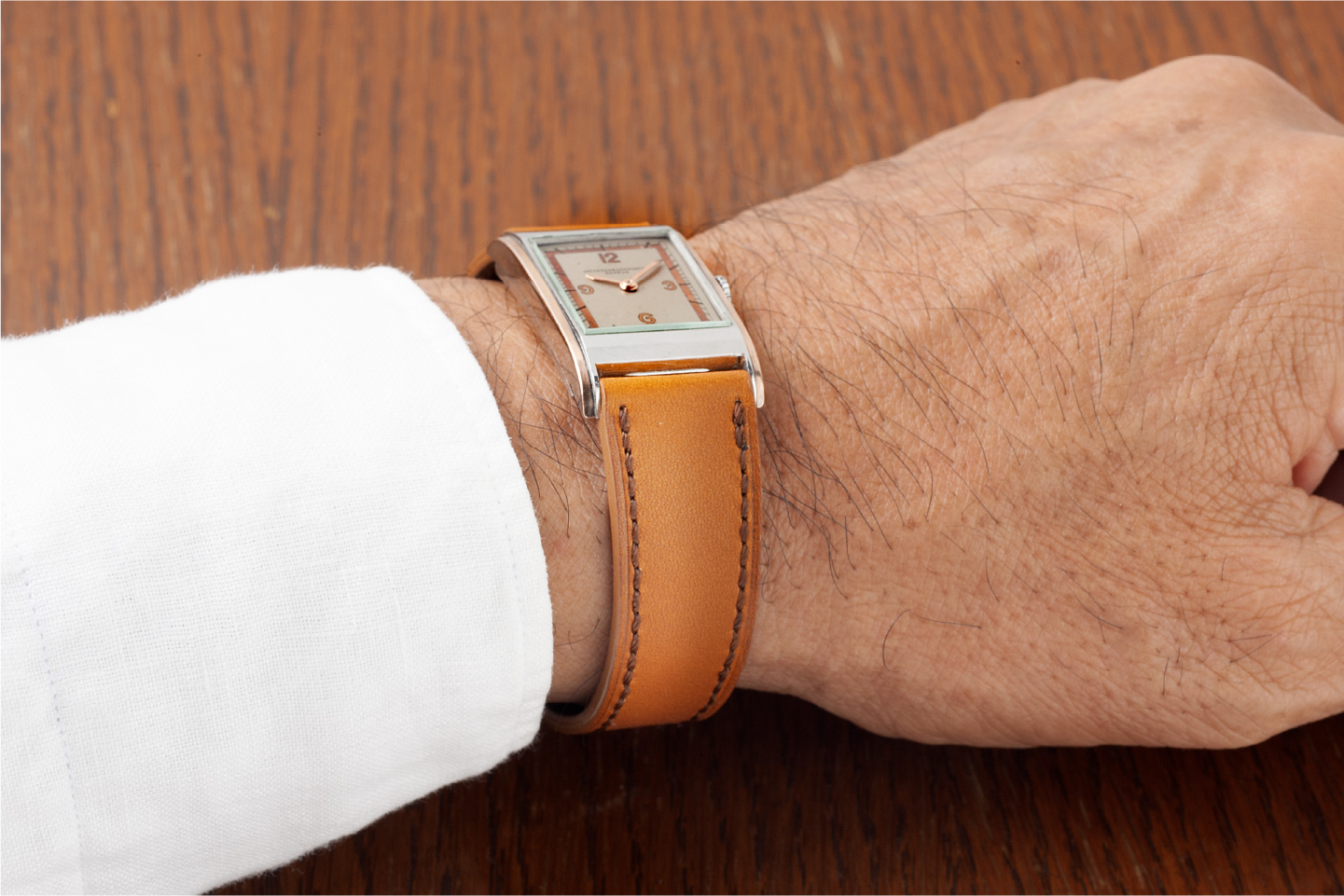 これまで数多くのストラップに出会ってきましたが、[JEAN-CLAUDEPERRIN]のストラップは弊社の扱うどのヴィンテージウォッチとも相性がよく、その時計の持つ唯一無二の佇まい、時を重ね出た表情豊かな存在感をより一層際立たせます。上質な革と手縫いステッチによる柔らかくしなやかな着け心地が魅力のジャン・クロードペランは、ヴィンテージウォッチの時計の良さを最大限に引き立ててくれるストラップであり、私たちにもとって無くてはならない存在です。