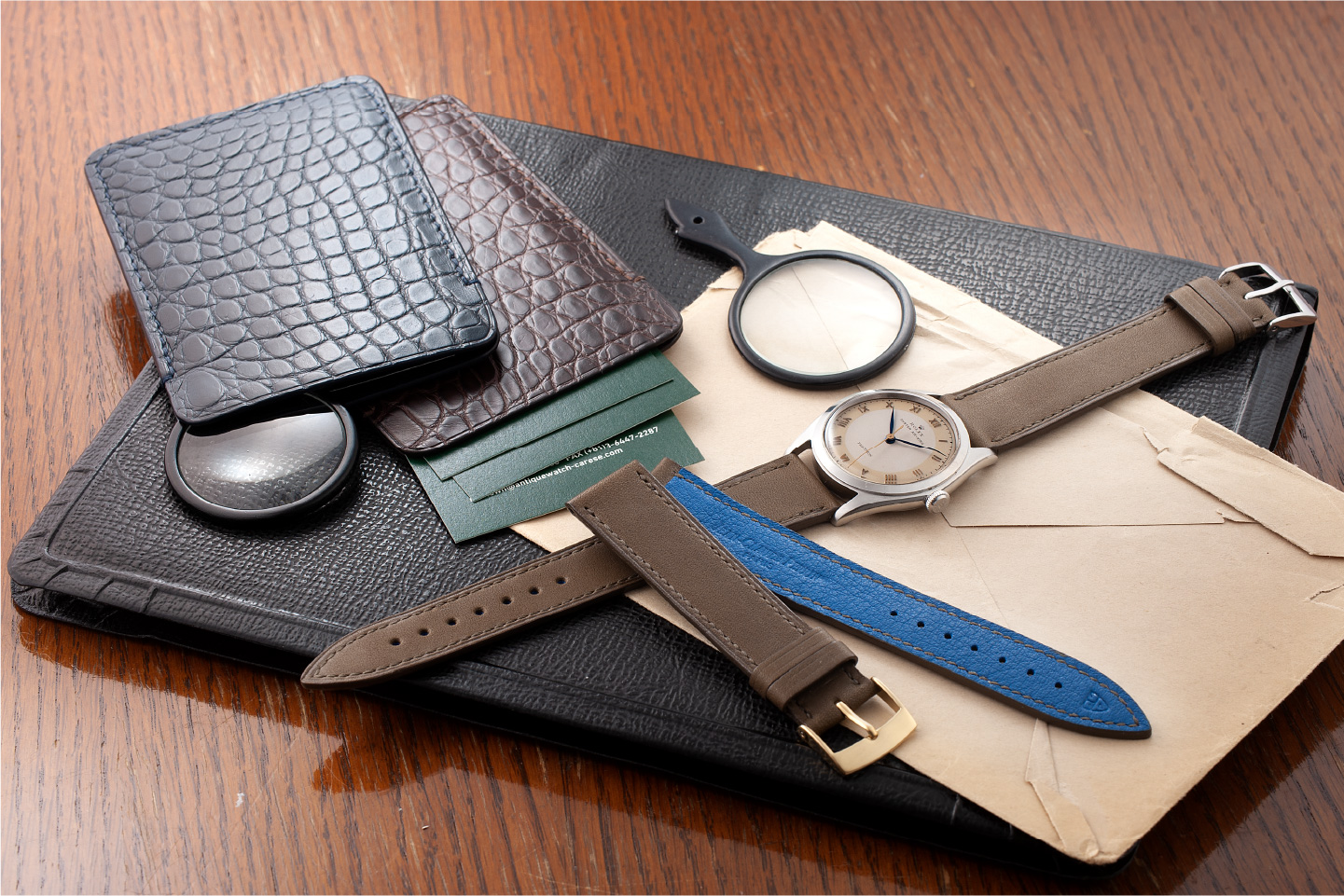 現在は、基本となるストラップを作り続けながら、上質で選定された革を使用し、オリジナルの革小物も制作しています。そして昔より変わらず数多くの時計メーカーのストラップを作り続けており、確たる信頼と実績が垣間見れます。