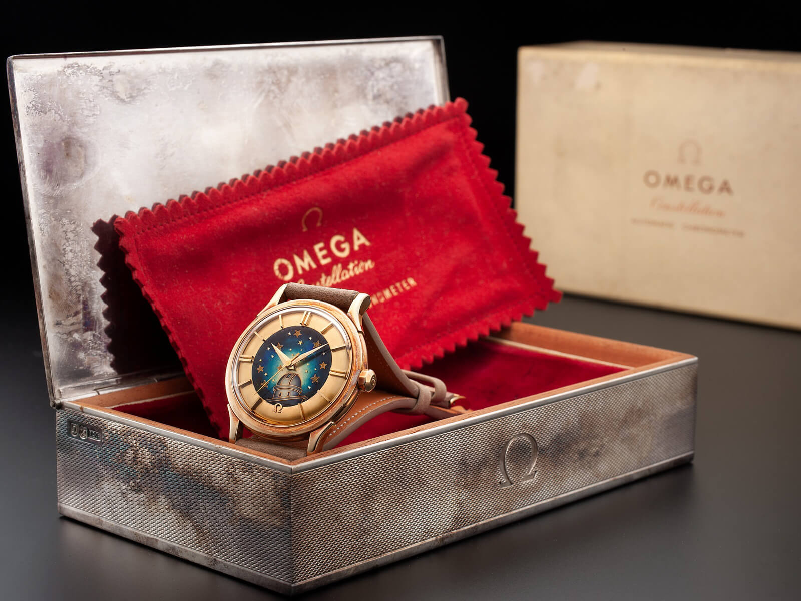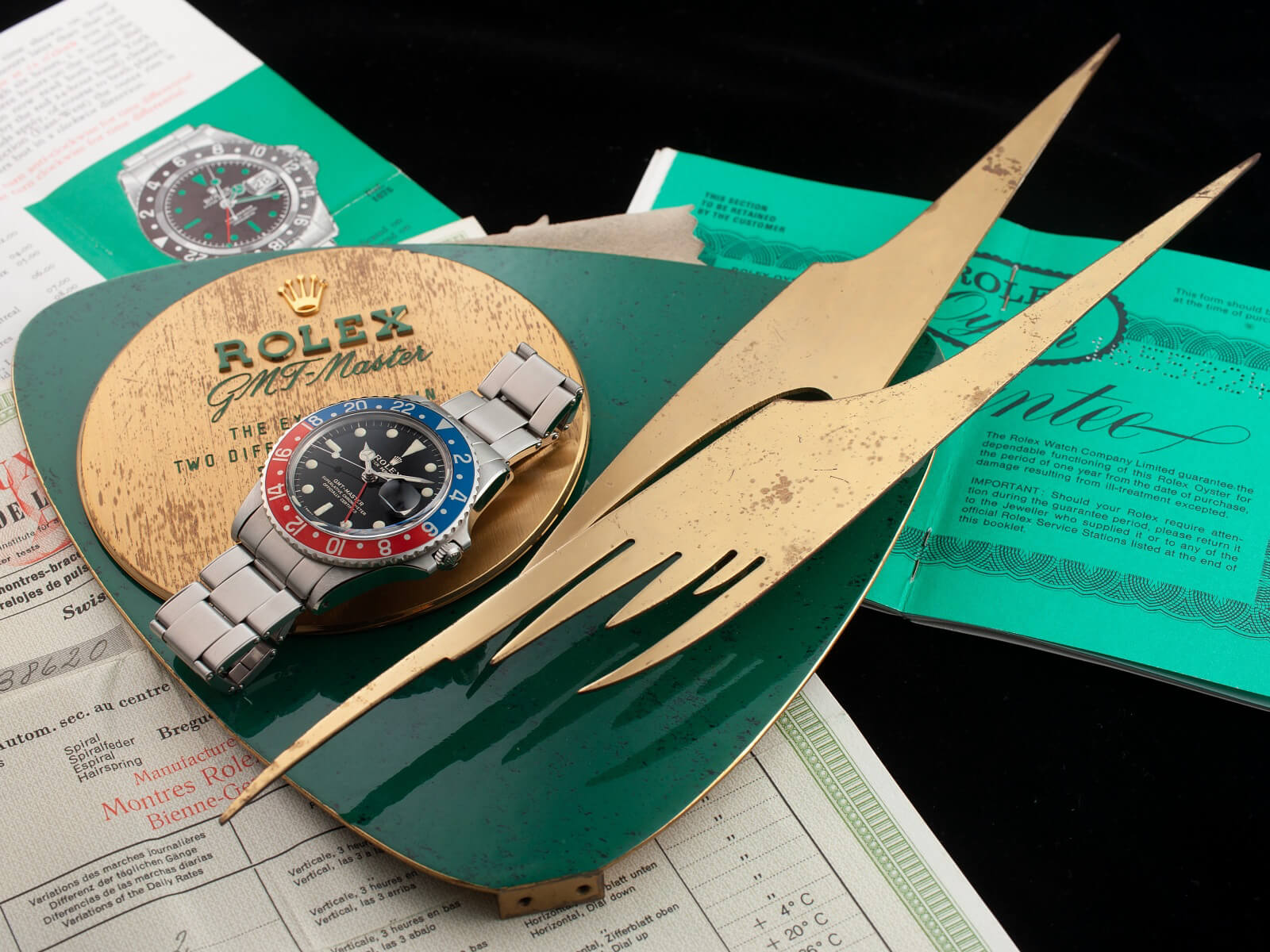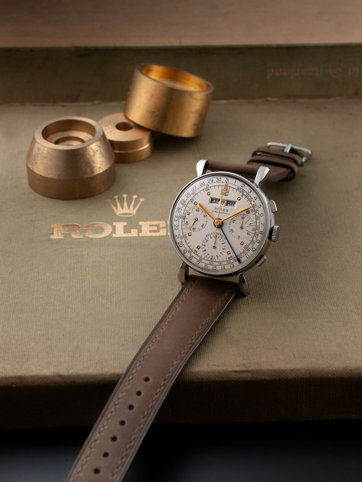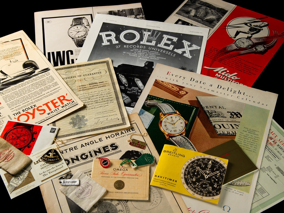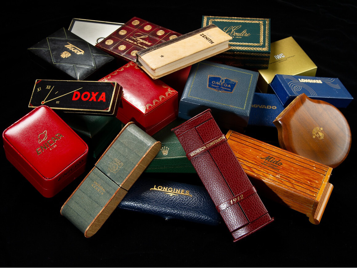 撮影させていただく時計の雰囲気や年代に合わせてケアーズでコレクションした貴重なBOXやペーパーと一緒に撮影し世界感を演出