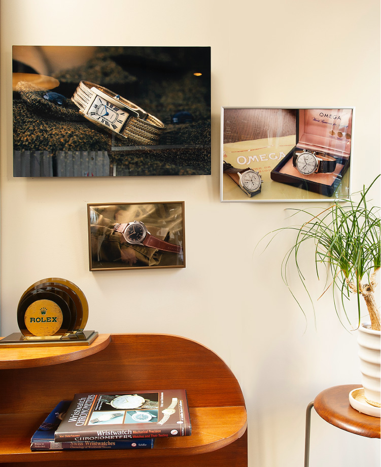 [STUDIO CARESE]はCARESEが所有するヴィンテージの付属品やアイテムを使用して、お客さまのコレクションしている時計を当時の世界観に演出して撮影します。お客さまの数あるコレクションの中から選んだその時計をアート作品のように撮影することで、ご自身の「特別な一本としてアーカイブ」されることでしょう。